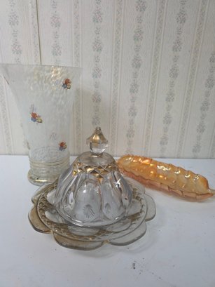 The guilding on the antique butter dish is almost gone.