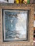 Gorgeous heavy antique frame. Small damage on the bottom. Print or painting inside in deterioration.