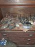As found large lot antique cast iron hand irons everything in picture on this table see all pictures for details