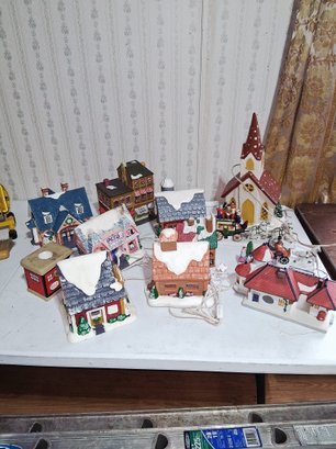 Large lot vintage Christmas buildings as found only a couple have cords see pictures for details