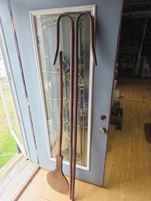 Wooden padle and 2 curved shepherds cane