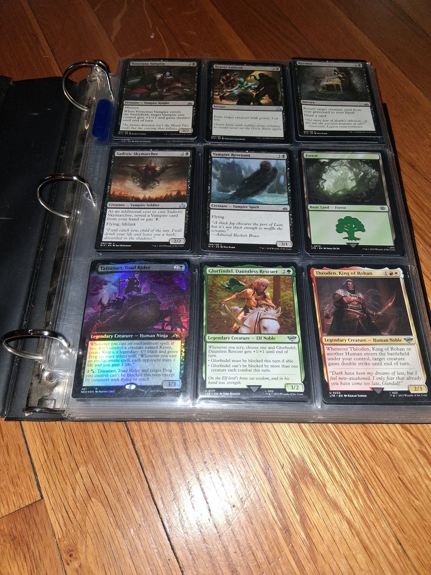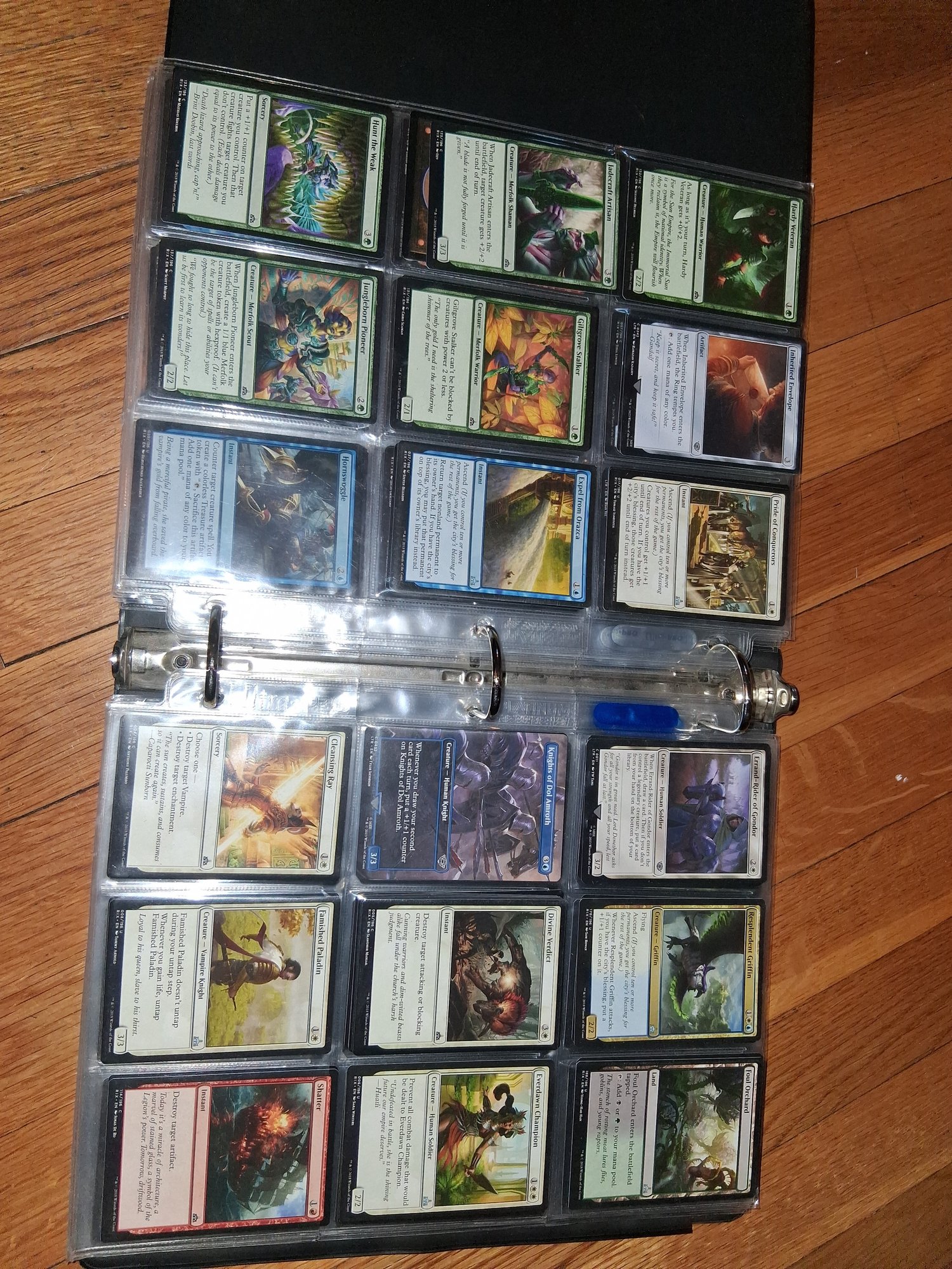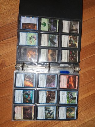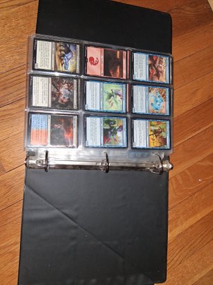 Nice Magic card collection binder filled with sleeves lots of good cards fully loaded see all pictures for details a picture was taken of everything page