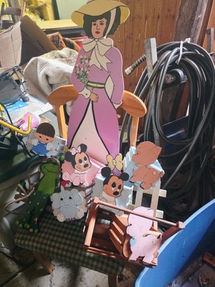 vintage, hand-painted wooden cut-out figurine designed for home or garden decor. Baskets with Disney cutouts