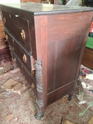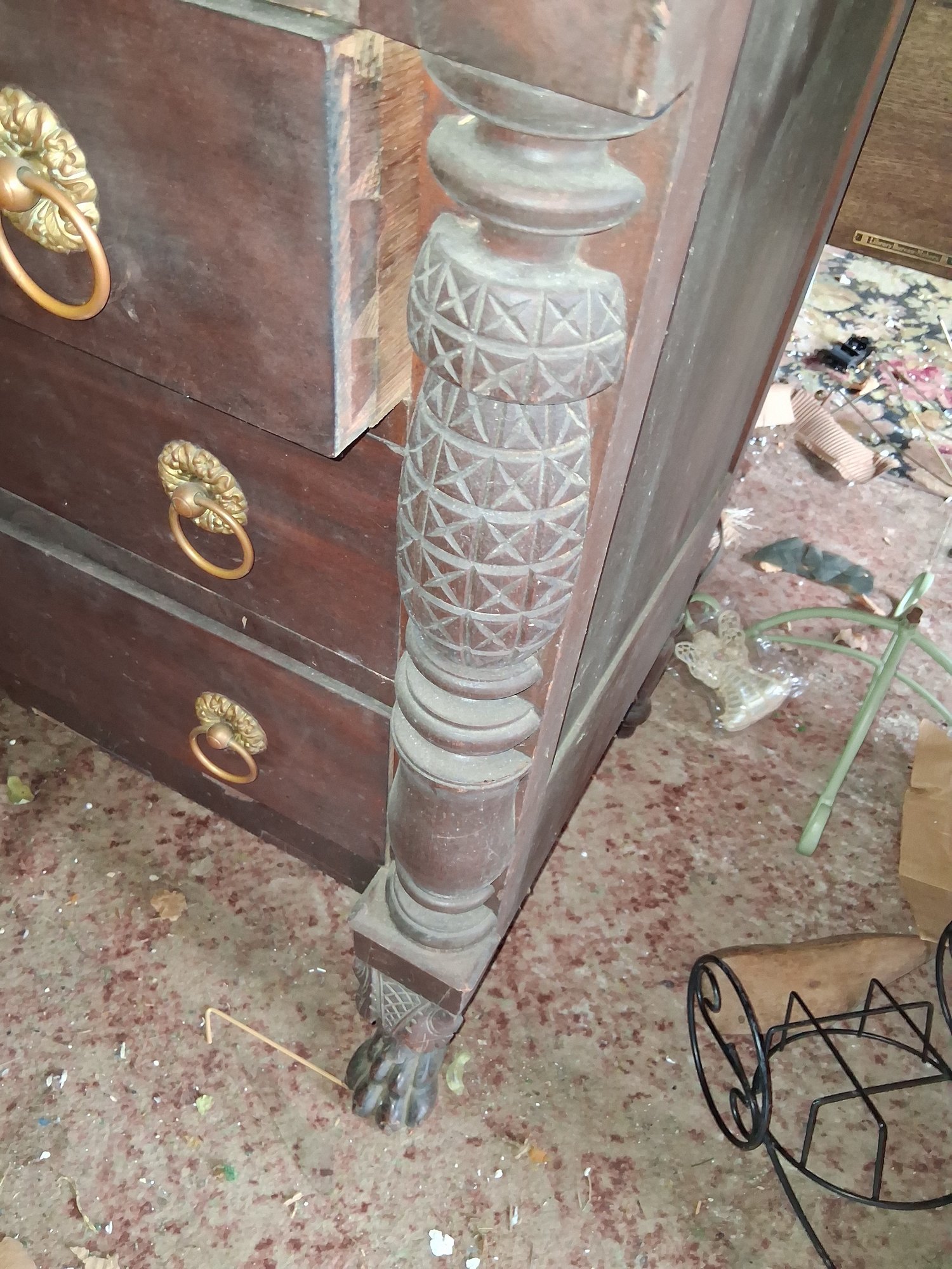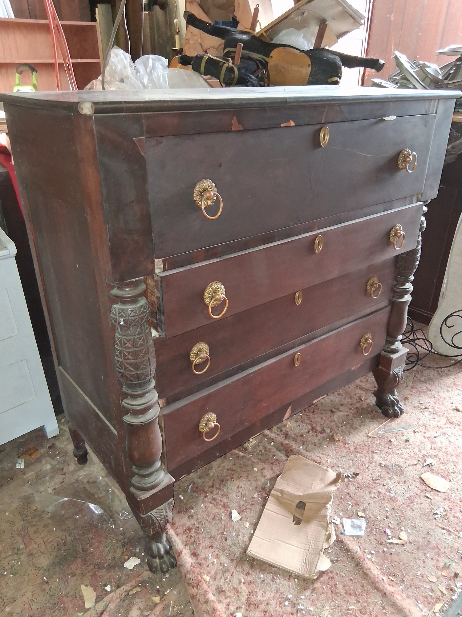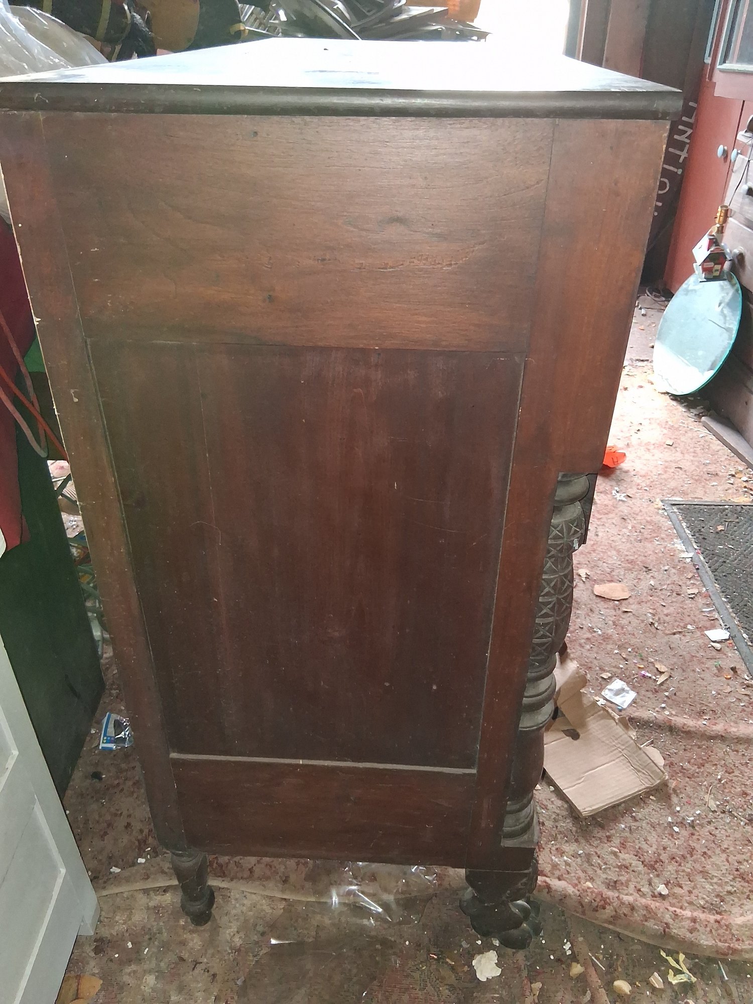 Gorgeous antique carved wood dresser as found in barn does have some minor wear make sure to see all pictures for details