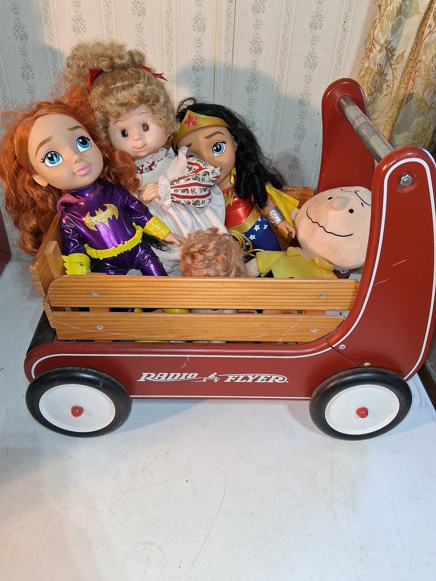 Radio Flyer 23 inch long kids push wagon with content as found see pictures for details