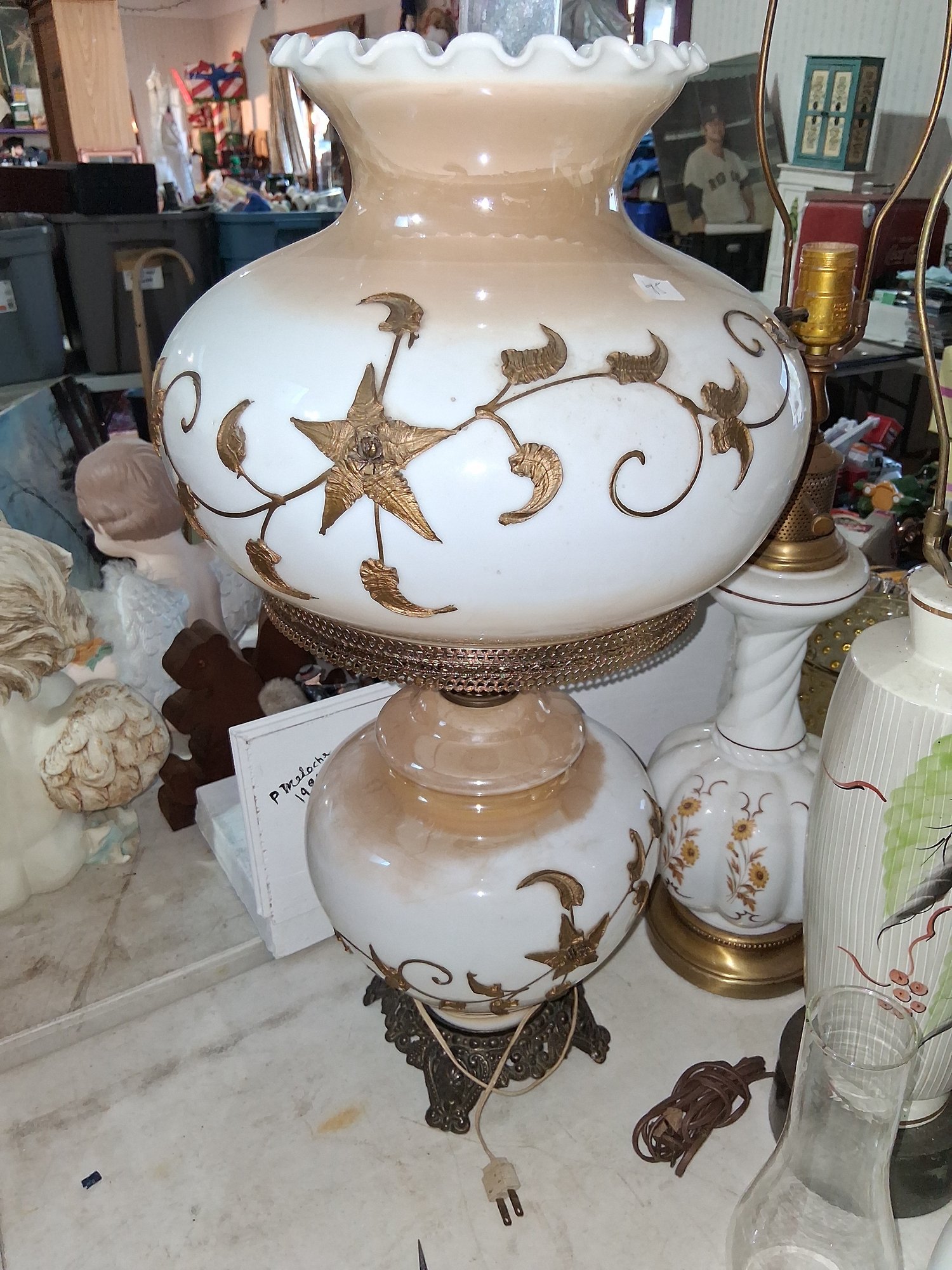 Stunning antique Gone With the Wind table lamp 28 in tall and perfect condition complete no cracks or chips see pictures for details
