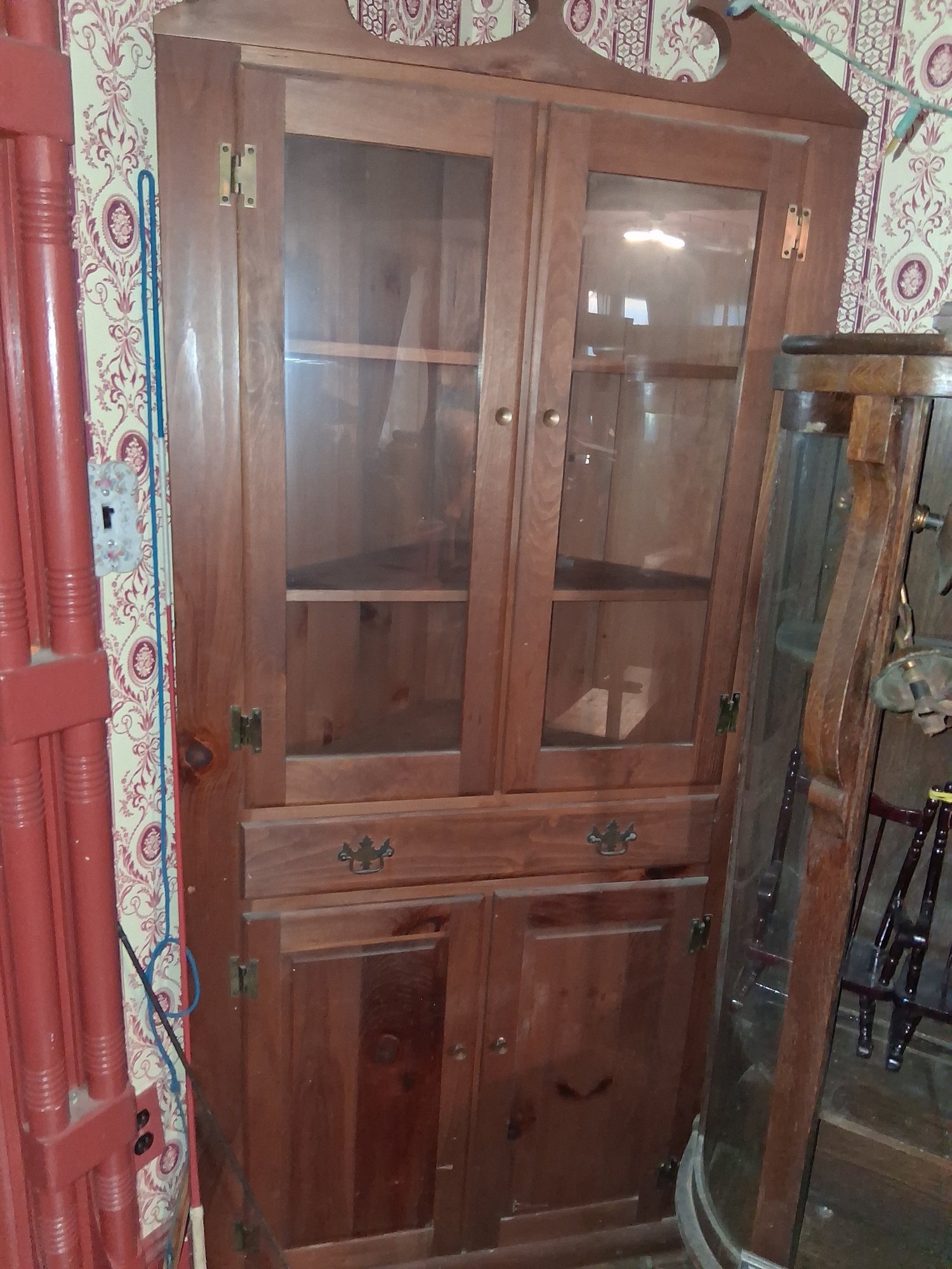 Stunning vintage country home corner cabinet and beautiful condition with content on the bottom see pictures for details