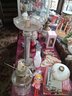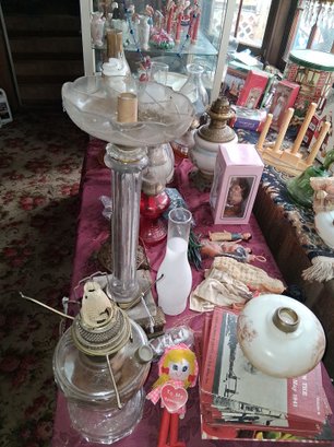 Nice table lot full of antique lamps and other items everything in picture on table see all pictures for details