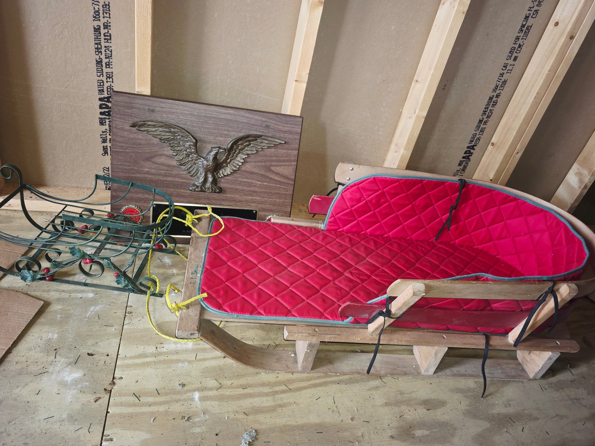 Bold eagle wall plaque. Gorgeous cushioned sled.