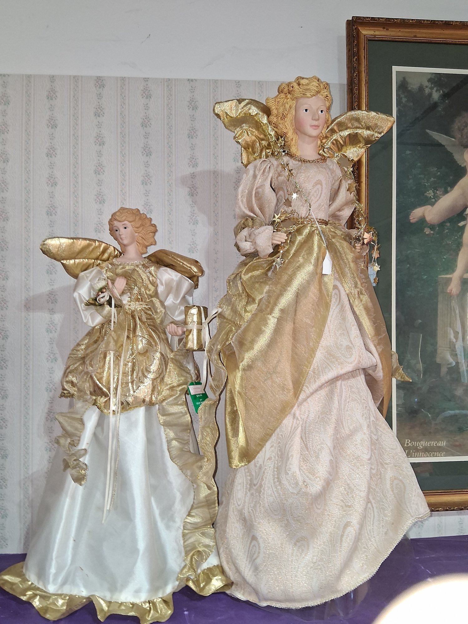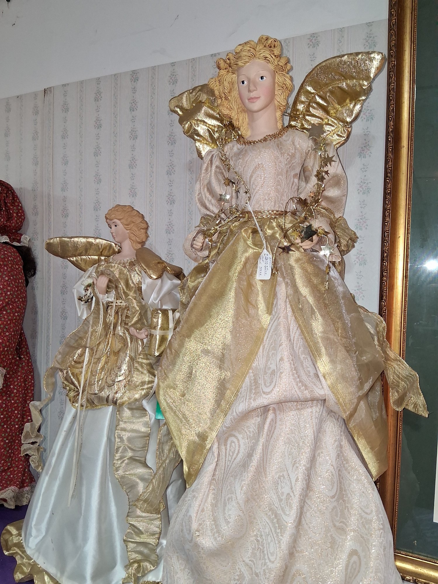 Vintage two Christmas collection light up old world Angels 27-in tall and 36 in tall as found see pictures for details