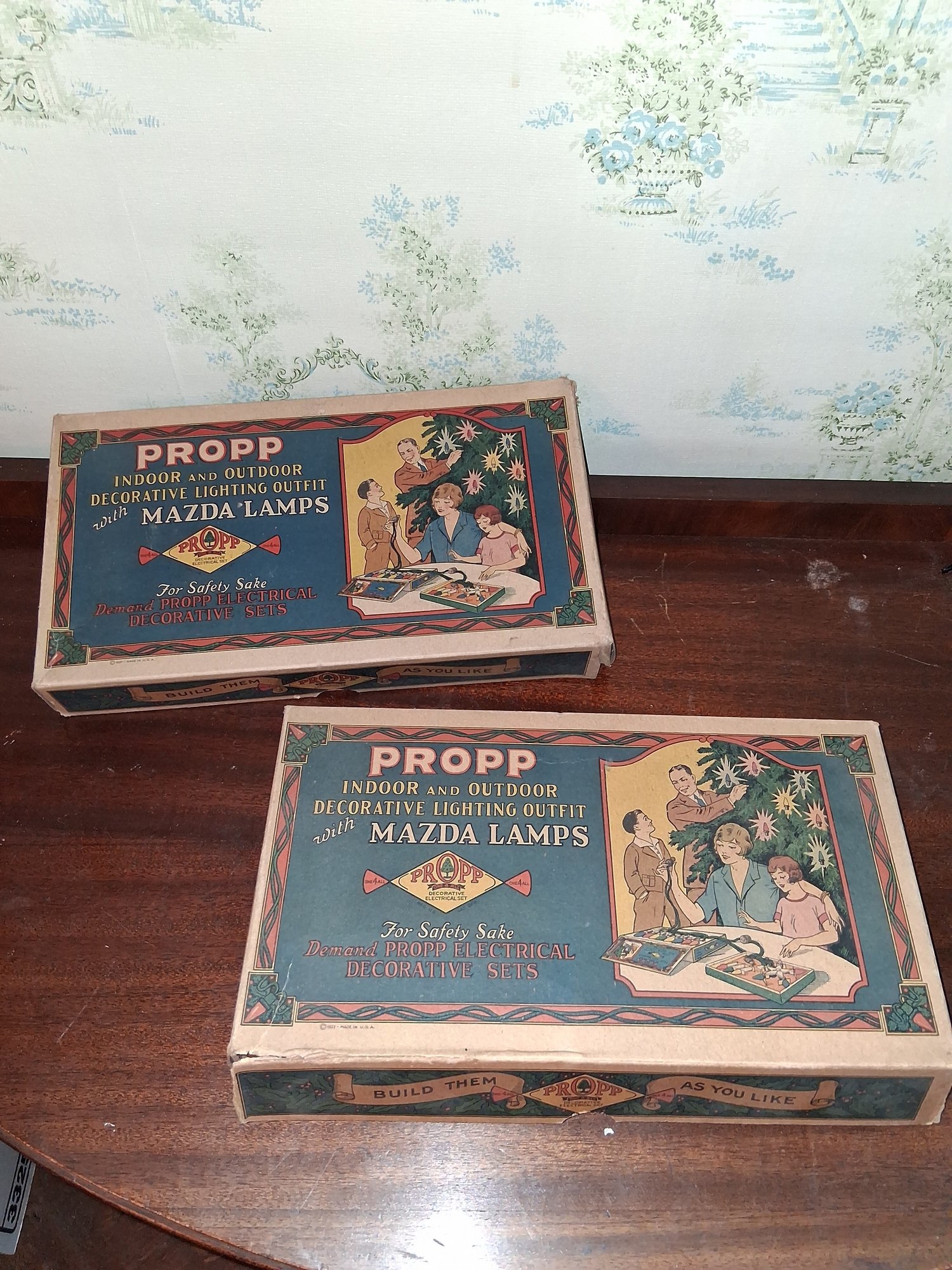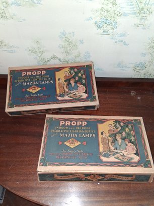 2- Vintage Christmas lights indoor and outdoor decorative lighting outfit with Mazda lamps in original box untested as found amazing condition see pictures for details