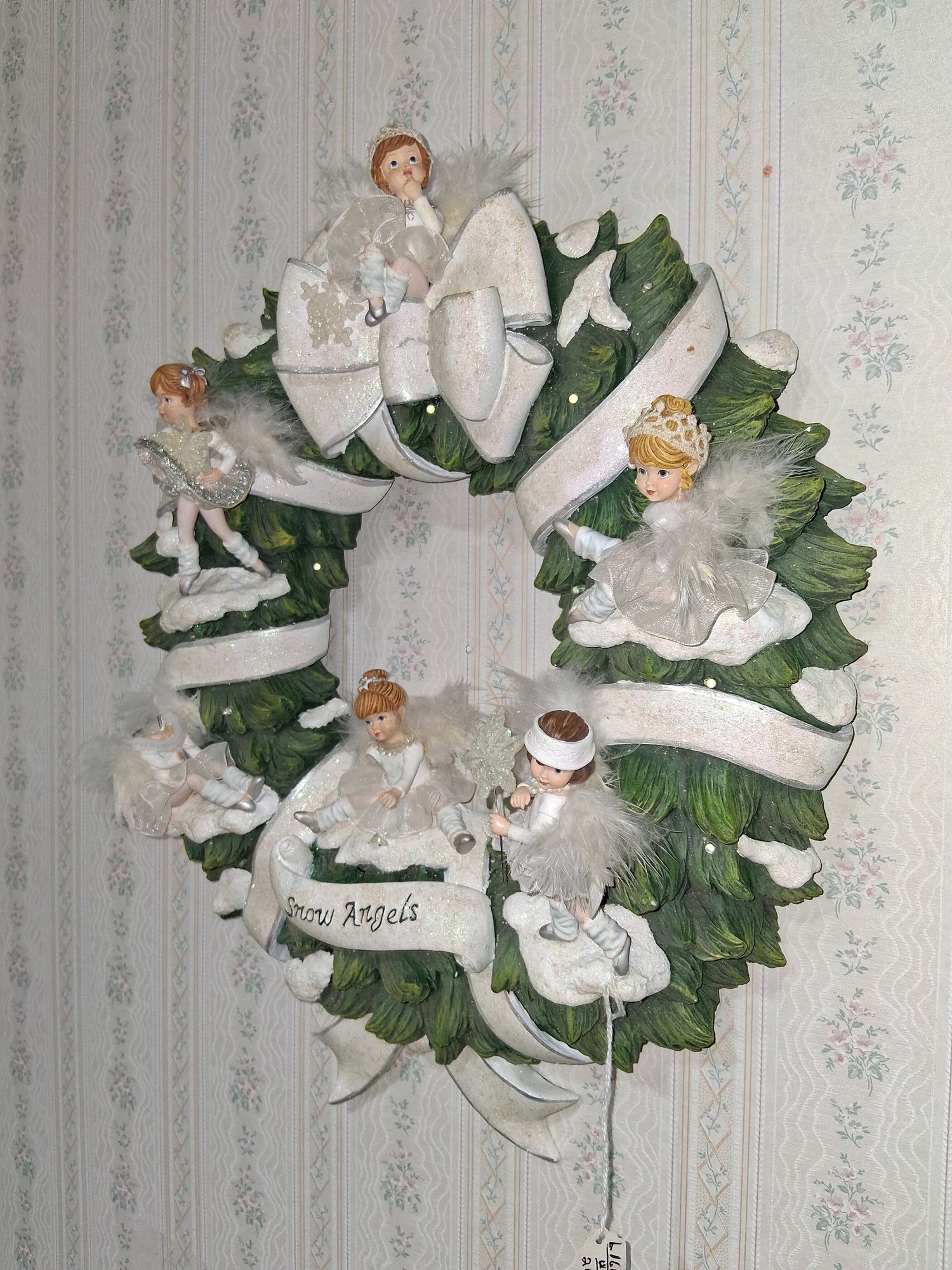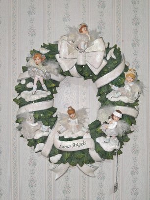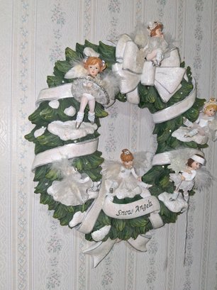Nice vintage resin Christmas angel wreath still on wall see pictures for details