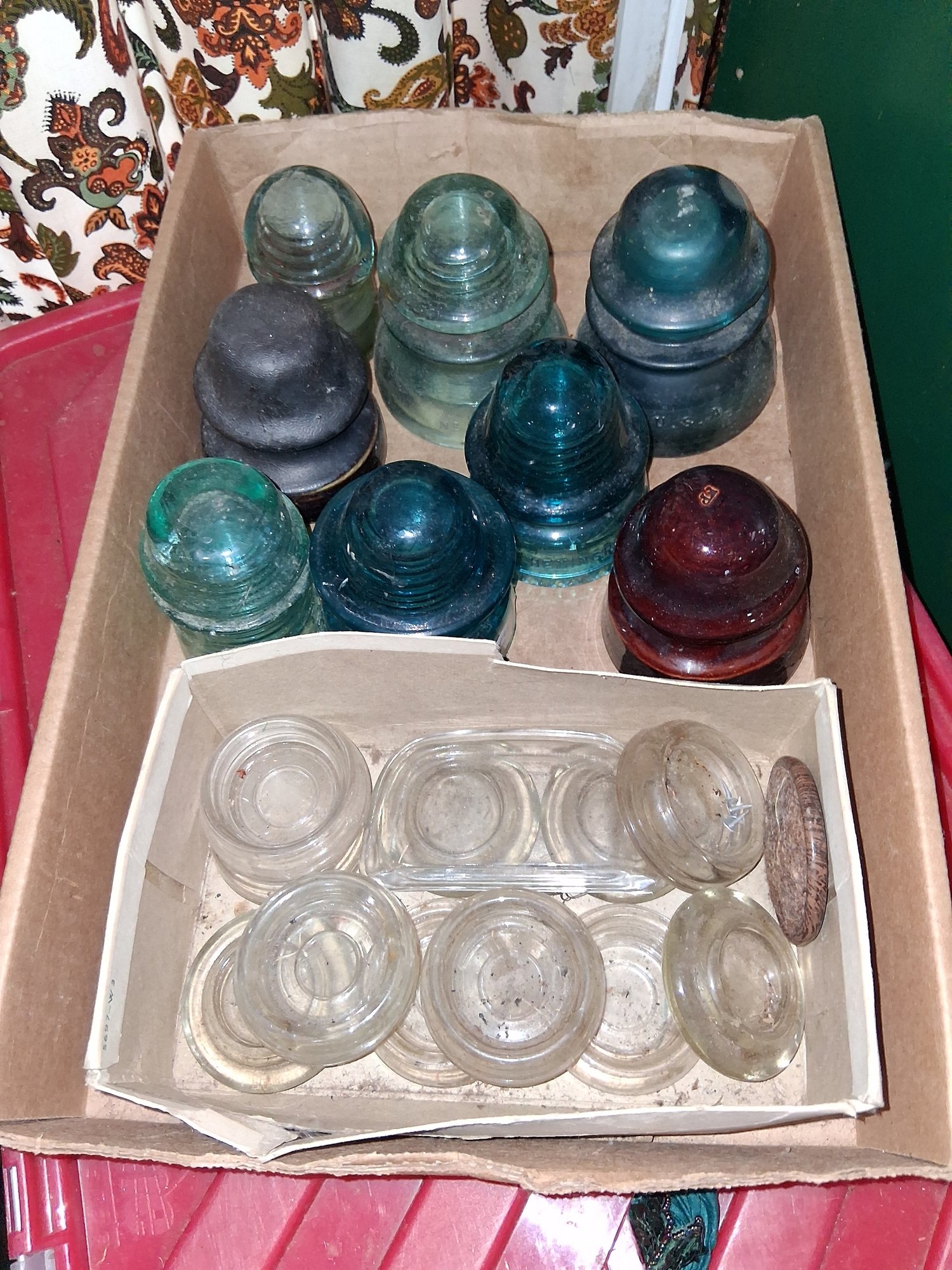 Vintage mixed insulators clear blue and red as found nice lot see pictures for details