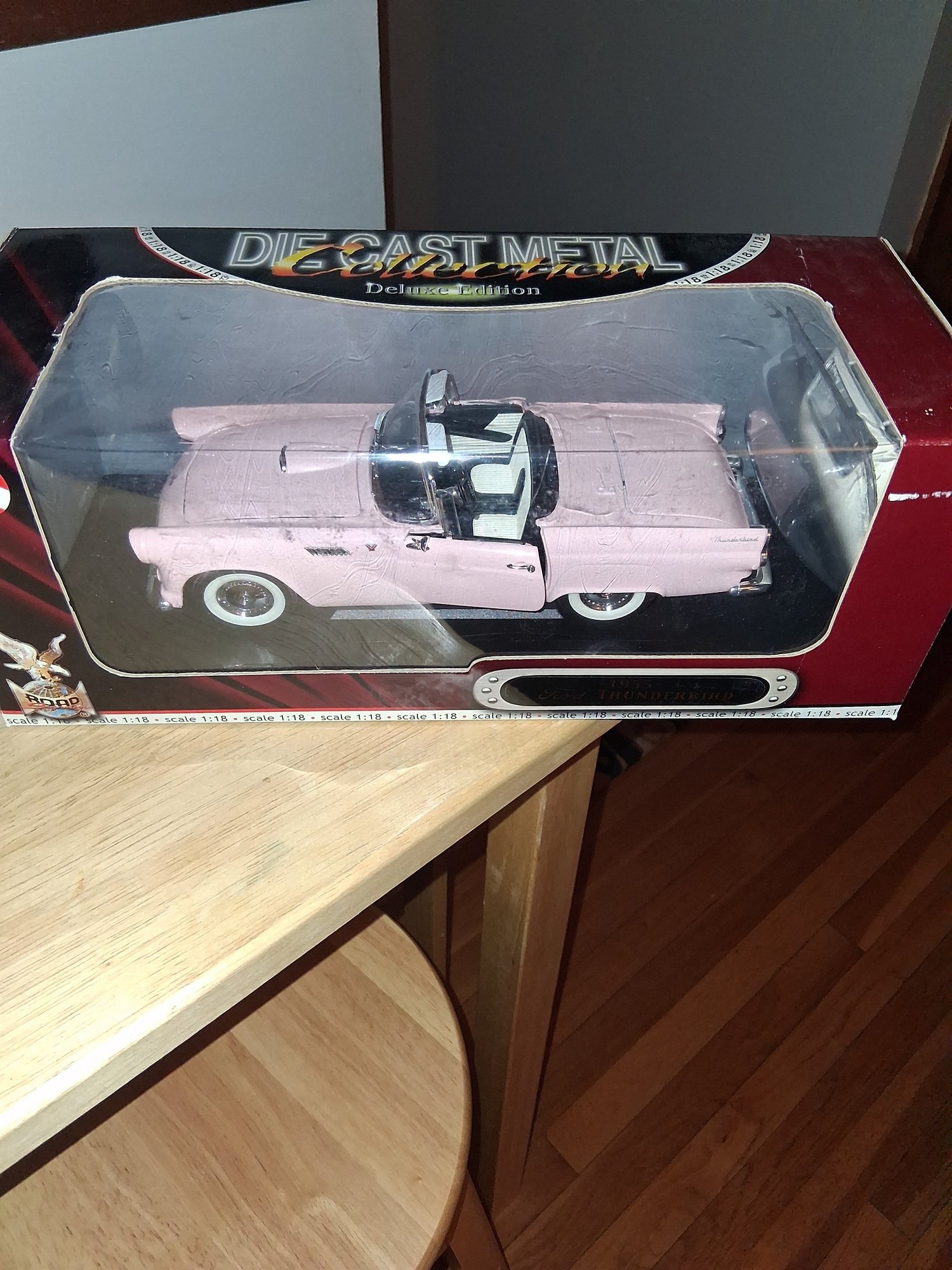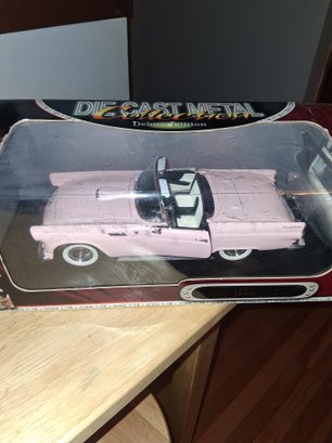 Vintage large diecast metal deluxe edition 1955 Ford Thunderbird pink car nice collectible new inbox see pictures for details