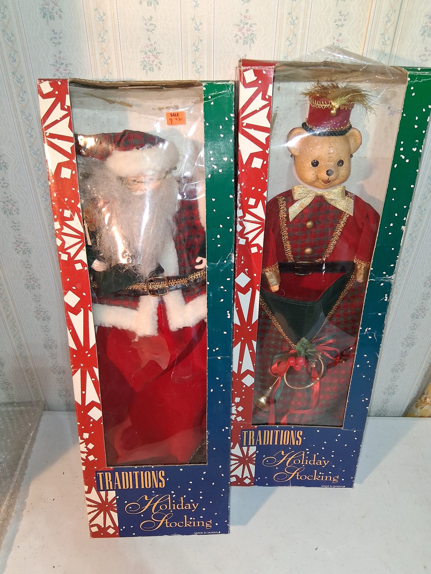 Vintage traditions holiday stockings Santa Claus and teddy bear appear to be new inbox see pictures for details boxes have minor wear