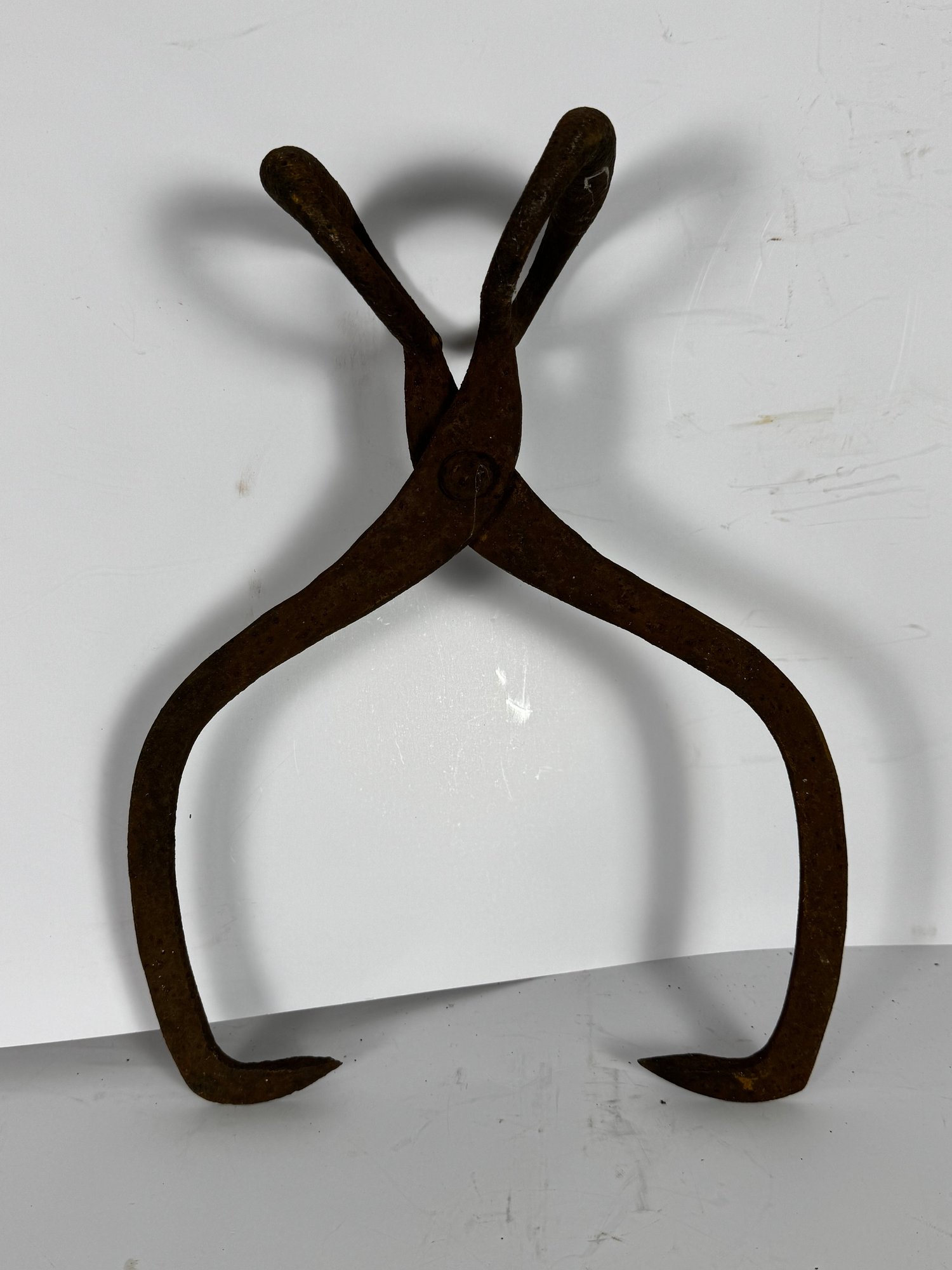 ANTIQUE CAST IRON ICE BLOCK TONGS (70B)