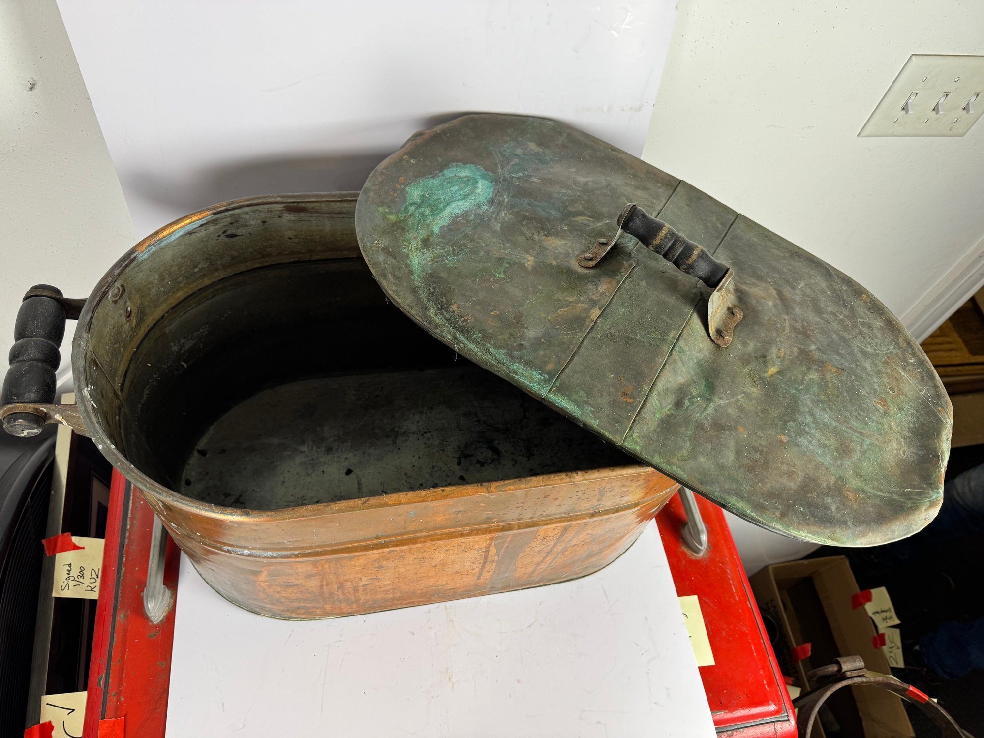 ANTIQUE COPPER BOILER WASH TUB (73B)