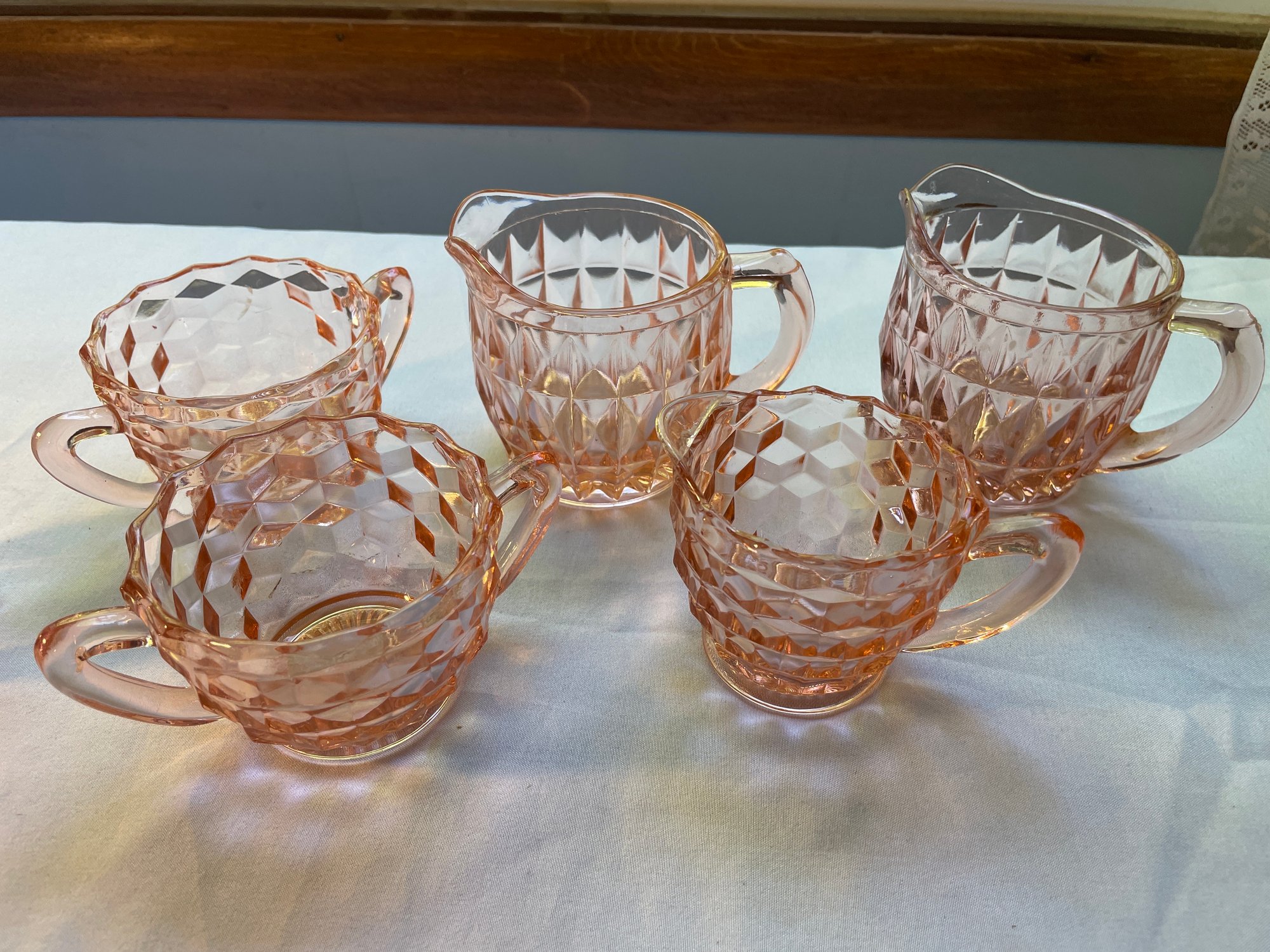 7 Pc Lot: Vintage Cube, Pink By Jeannette Glassware