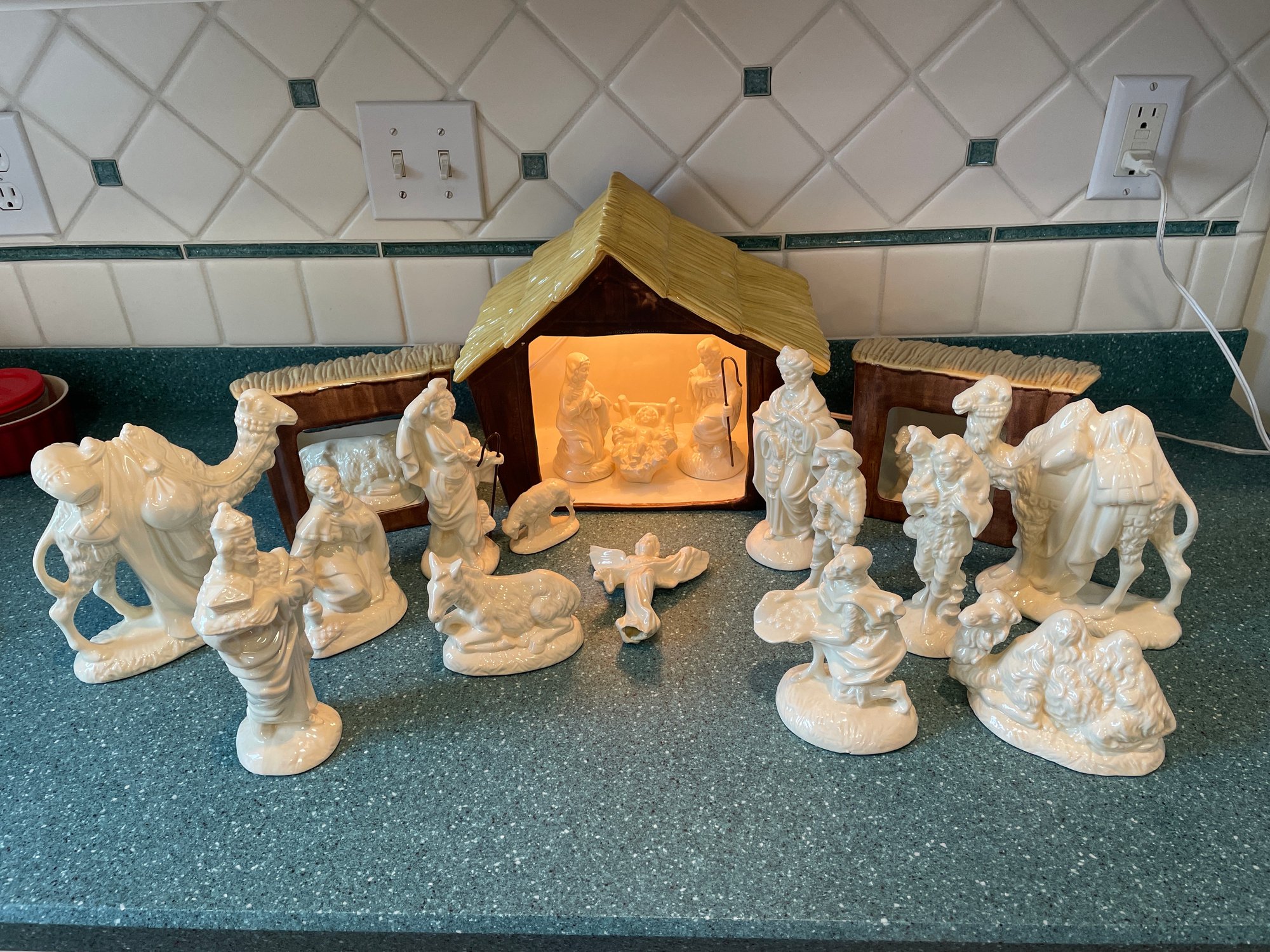 Ceramic Lighted Nativity Scene 22 Pieces