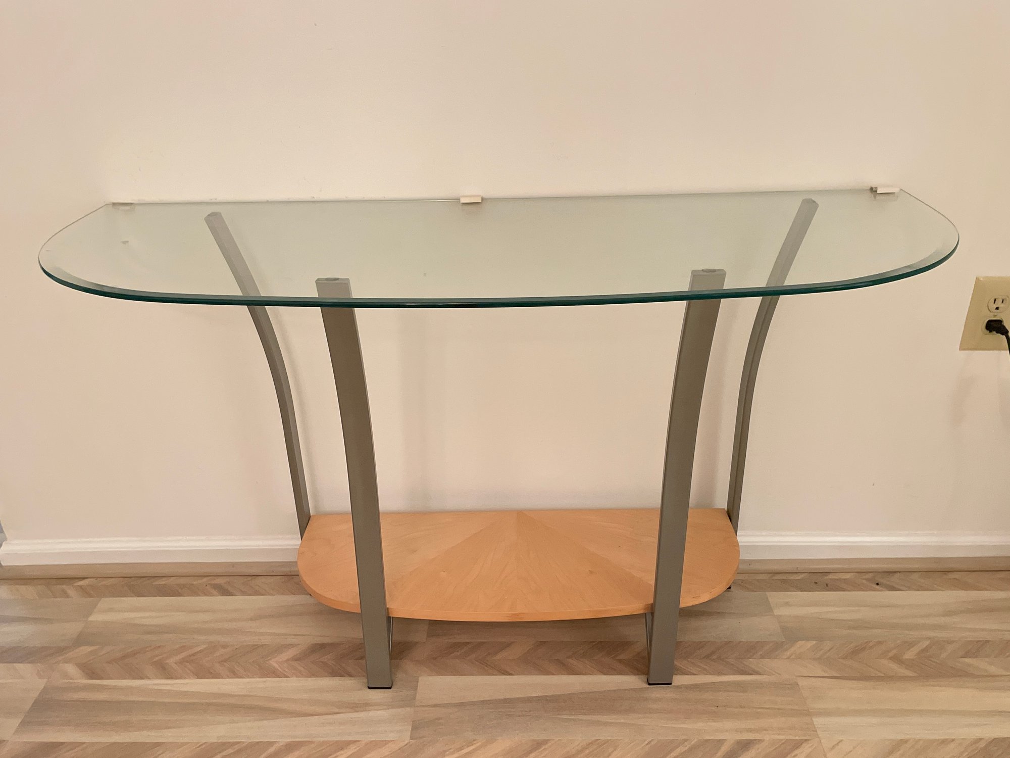 Midcentury Modern Console Table: Glass, Aluminum And Birch