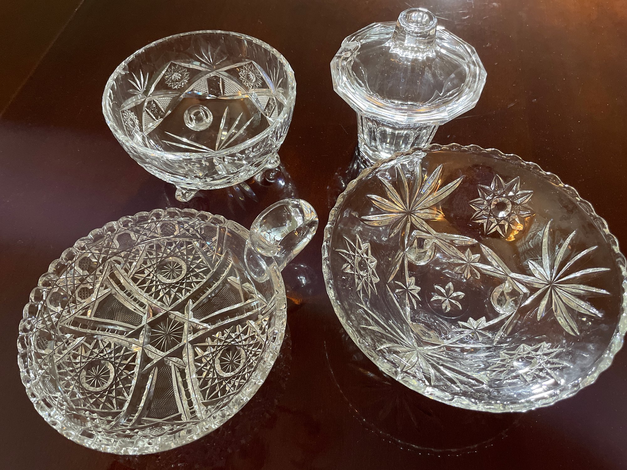 Vintage Cut Crystal Candy Dishes, & Depression Glass Sugar Bowl