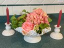 White Hobnail Milk Glass, Candleholders, And Fruit Bowl