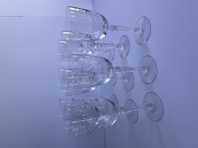 Set Of 9 Crystal Wine Glasses With Floral Designs