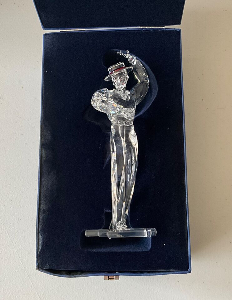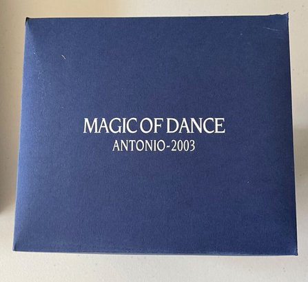The Swarovski Crystal Antonio 2003 SCS Annual Edition "Magic of Dance" is a special collectible crafted by Swarovski. This figurine, featuring Antonio, is part of the Magic of Dance series released by Swarovski in 2003. It typically comes with a case and is presented in a decorative box, making it a cherished item for collectors and a stunning representation of Swarovski's commitment to capturing elegance and movement in crystal art. These annual editions from Swarovski are highly valued for their intricate craftsmanship and artistic portrayal of dance themes.
