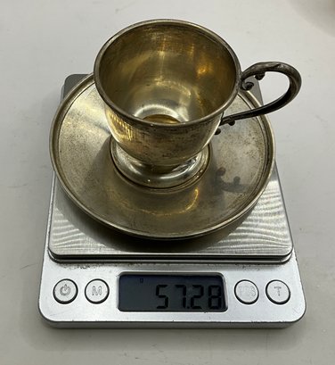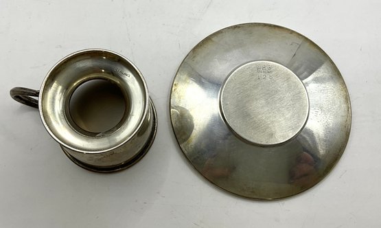 The sterling silver cups have a lovely pierced design and graceful handle. The cream Lenox inserts are trimmed with a bright gold rim.