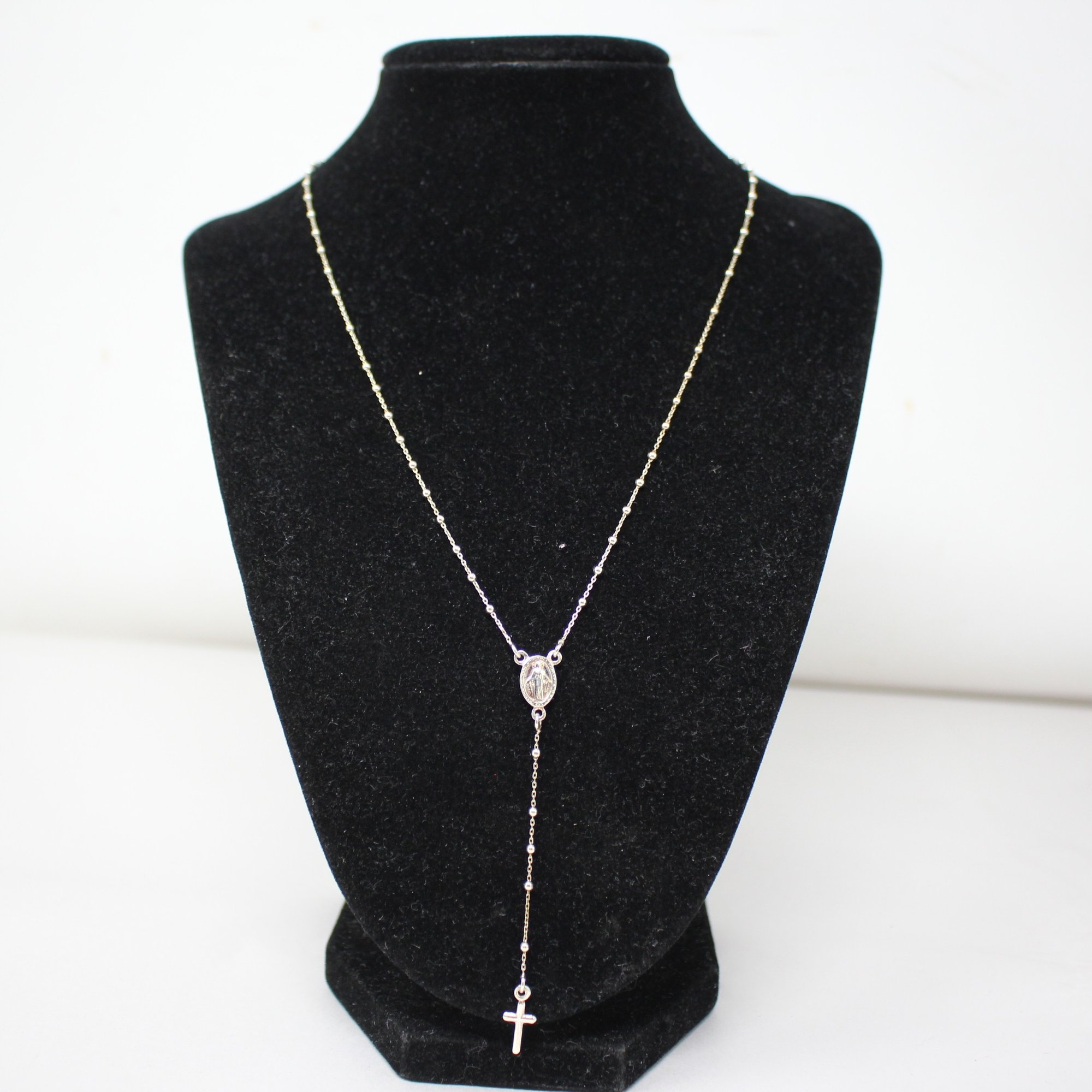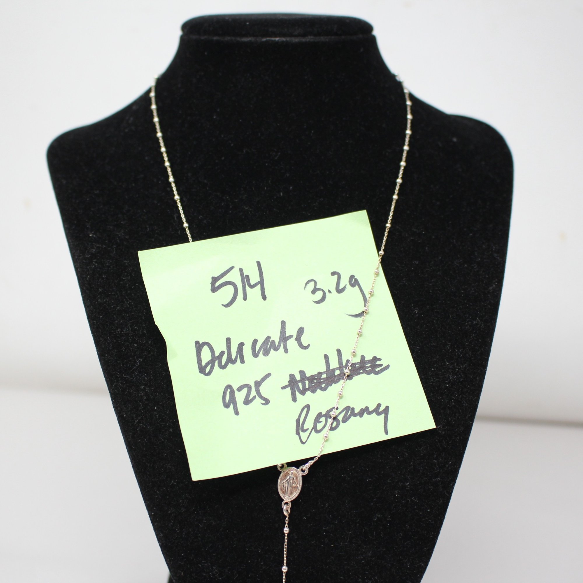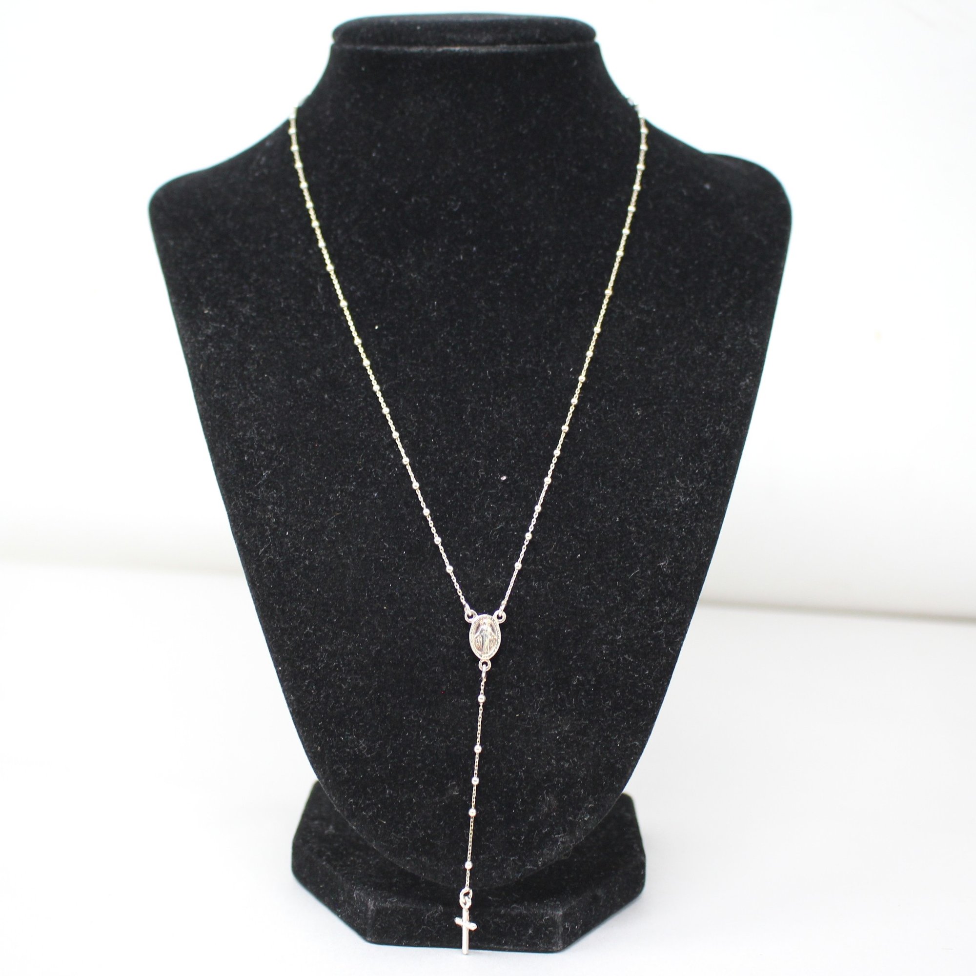Delicate Stelring Silver Rosary Necklace (514)