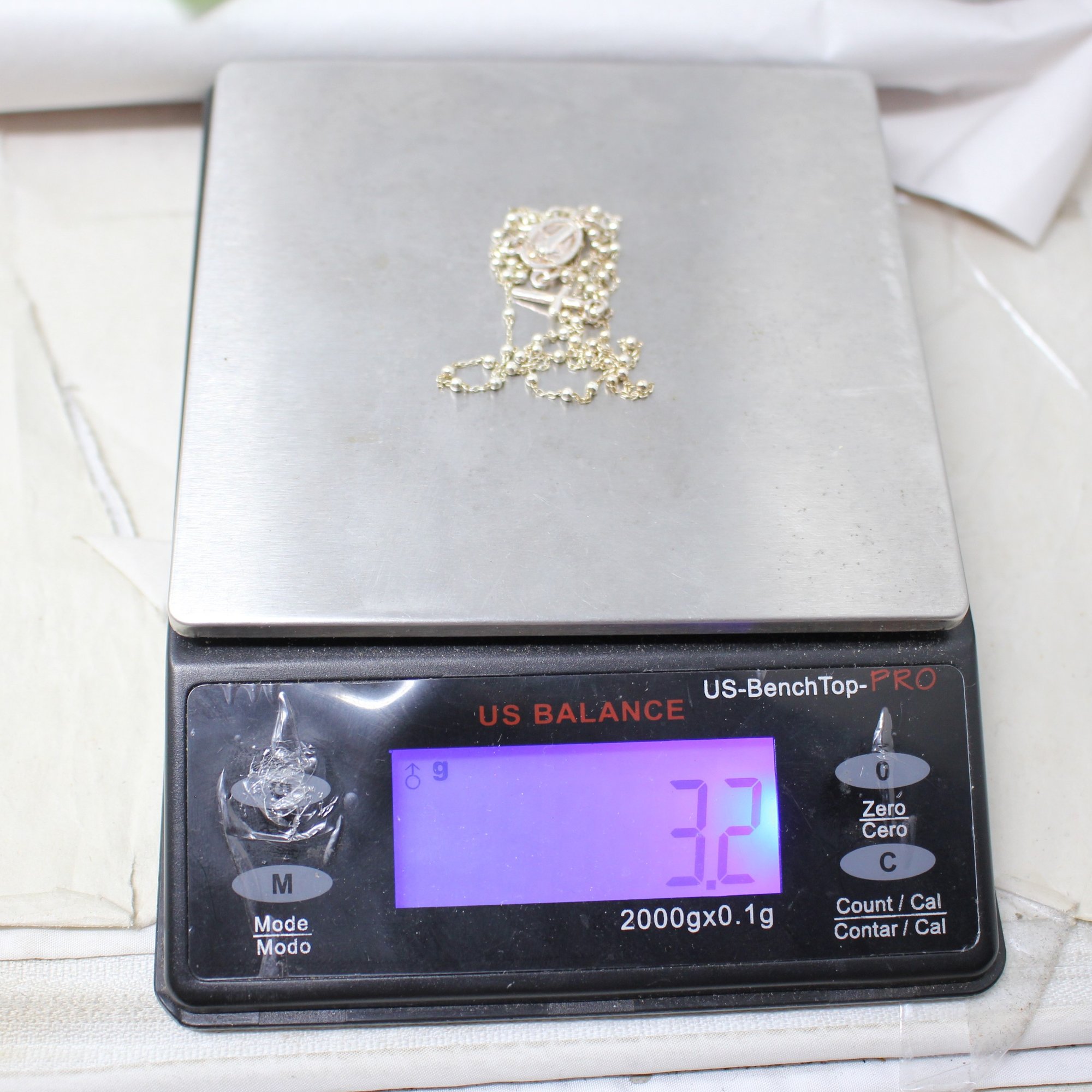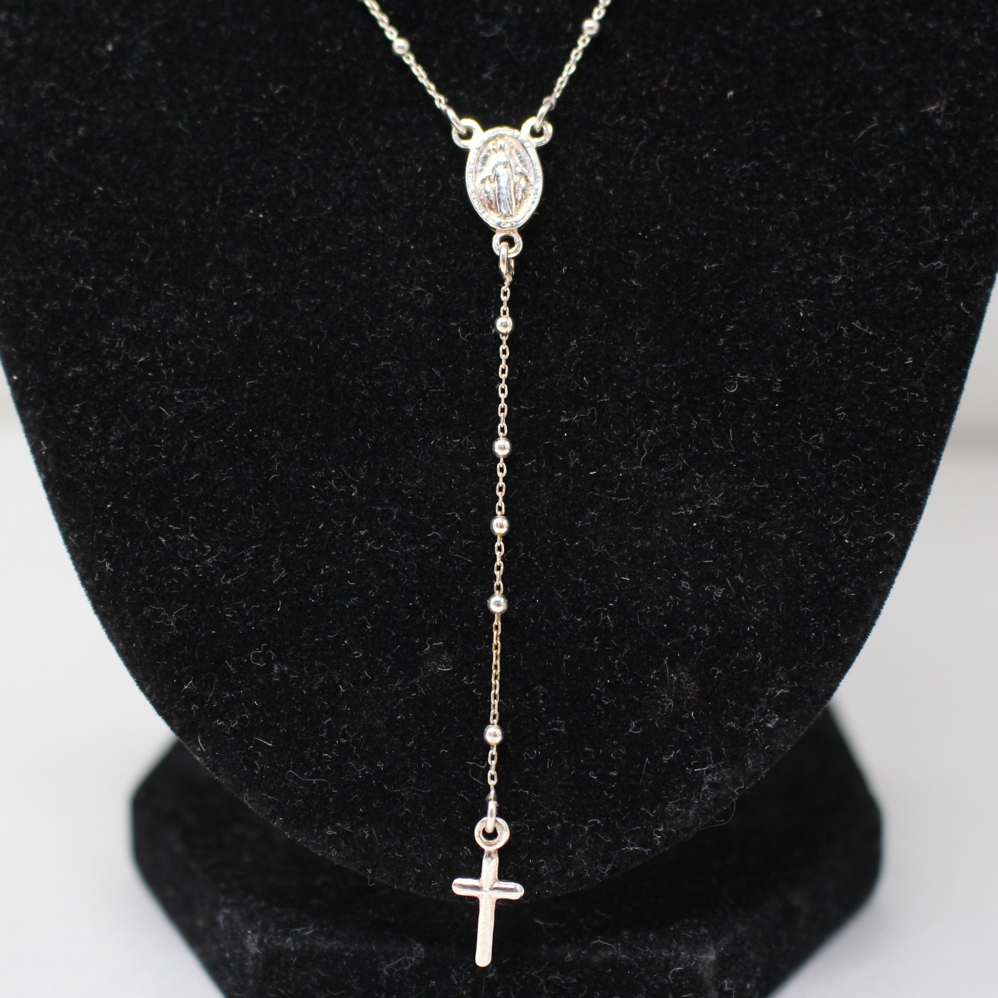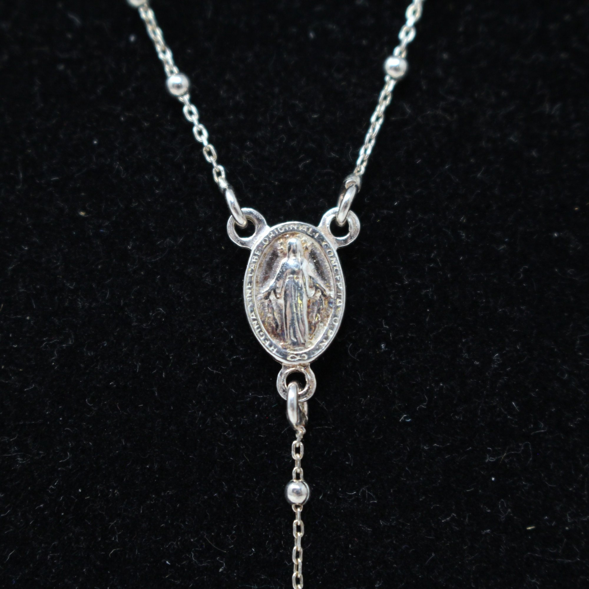Delicate Stelring Silver Rosary Necklace (514)