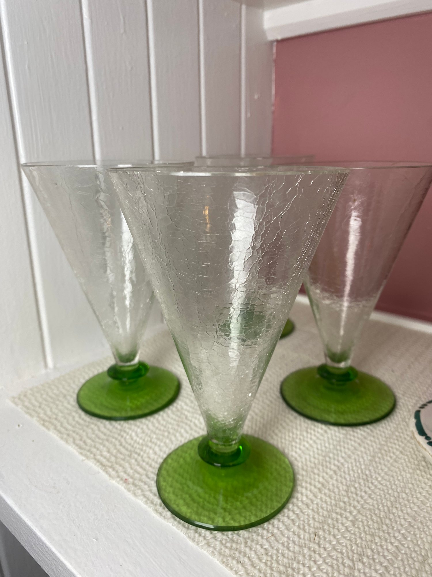 Four Green And Clear Crackle Glasses (P36)
