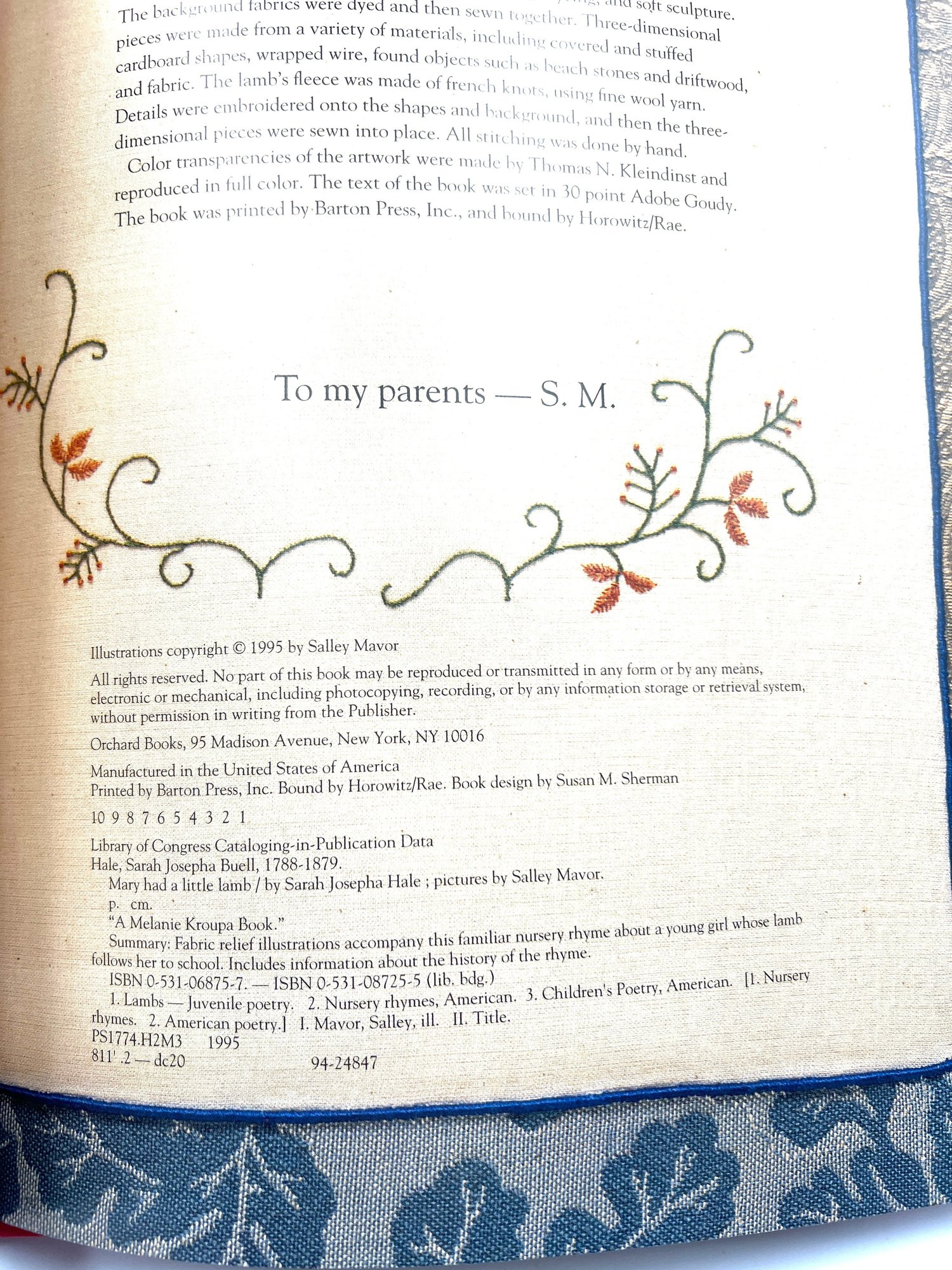 Sally Mavor Signed "Mary Had A Little Lamb" (109)