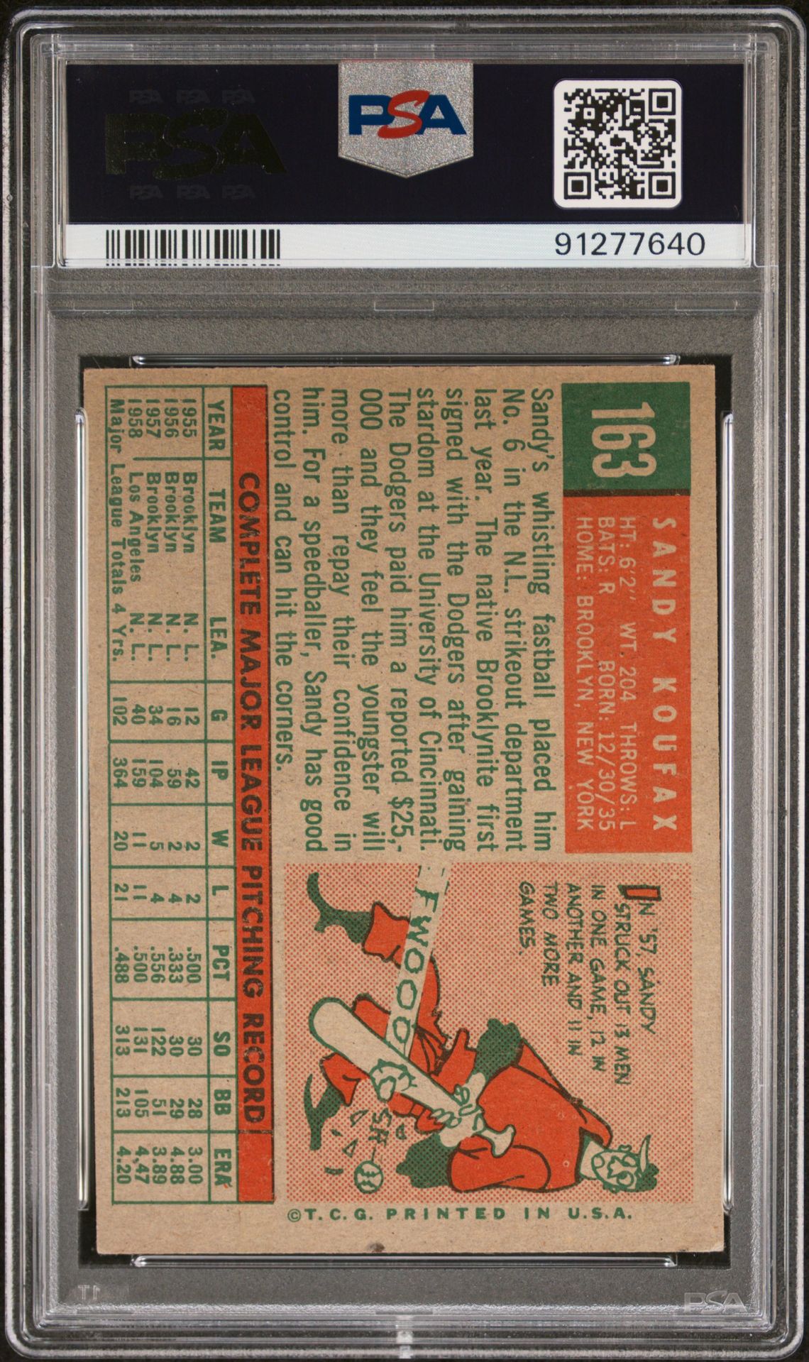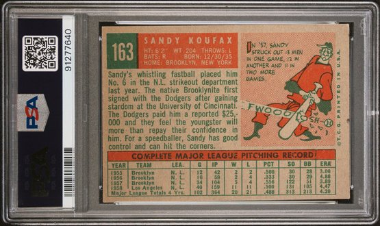 1959 Topps: Sandy Koufax - PSA 6 {EX-MT}...Excellent Mint