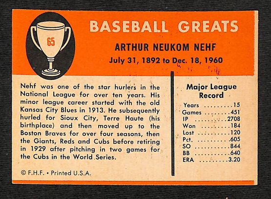 1961 Fleer: Art Nehf
