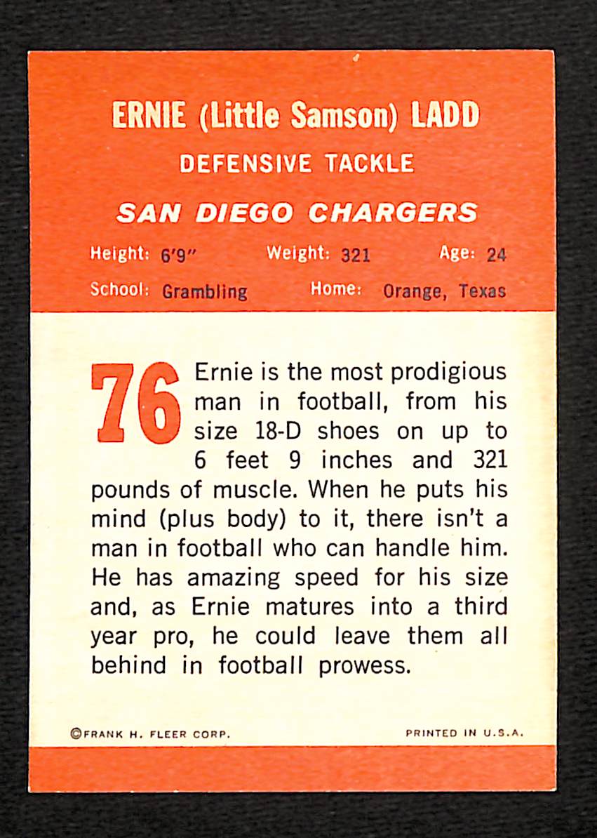 A stellar vintage card offered by Fleer in the 1963 edition...Ladd later became famous for his professional wrestling talent...