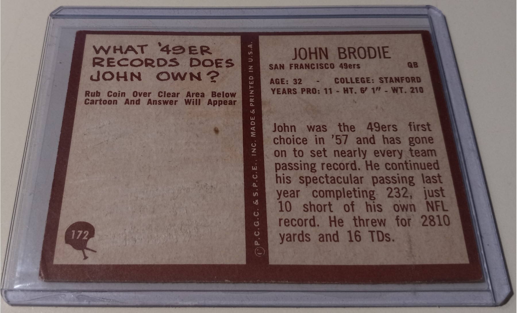 Hall of Fame Quarterback on a beautifully preserved card over 50 years old!