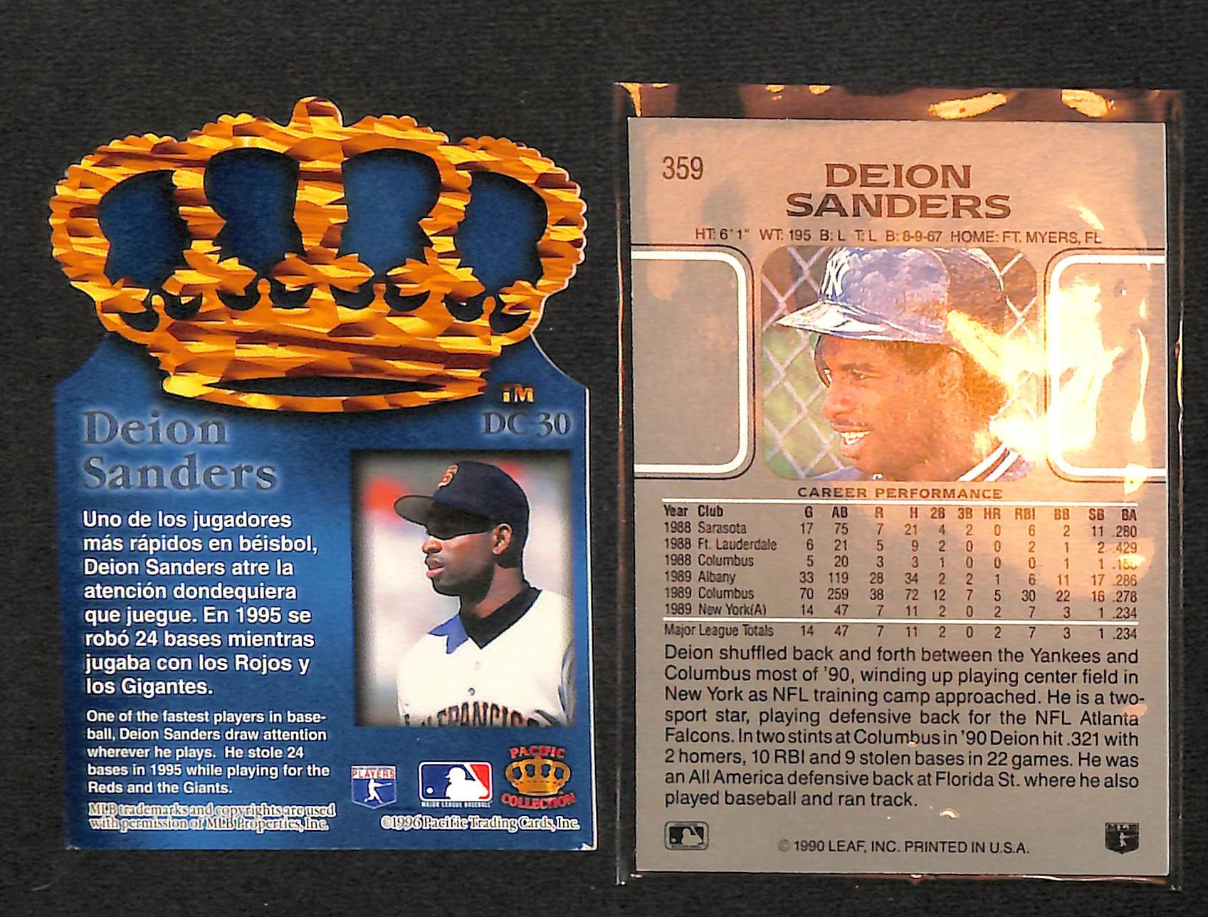 1990 Leaf & 1996 Pacific Trading Cards: Deion Sanders
