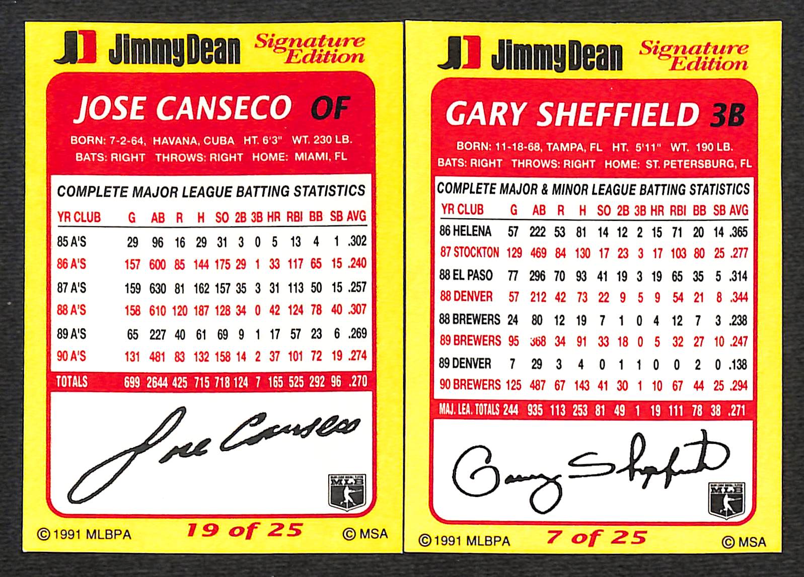 1991 MLBPA: Jose Canseco & Gary Sheffield