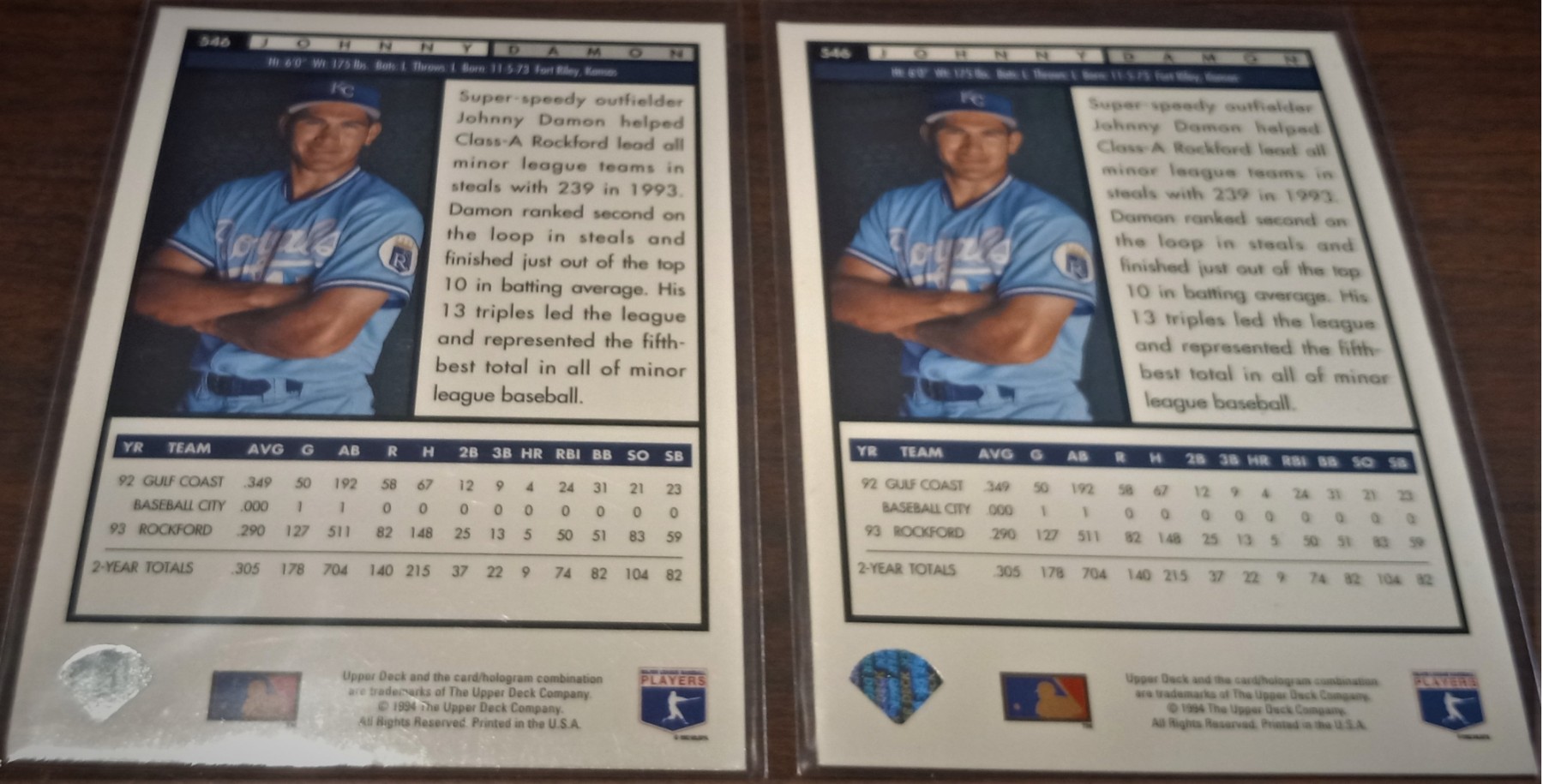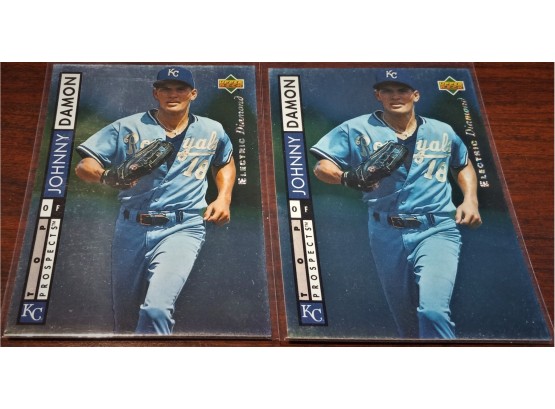 A 2-card lot of a vintage Johnny Damon as a young baseball prospect!