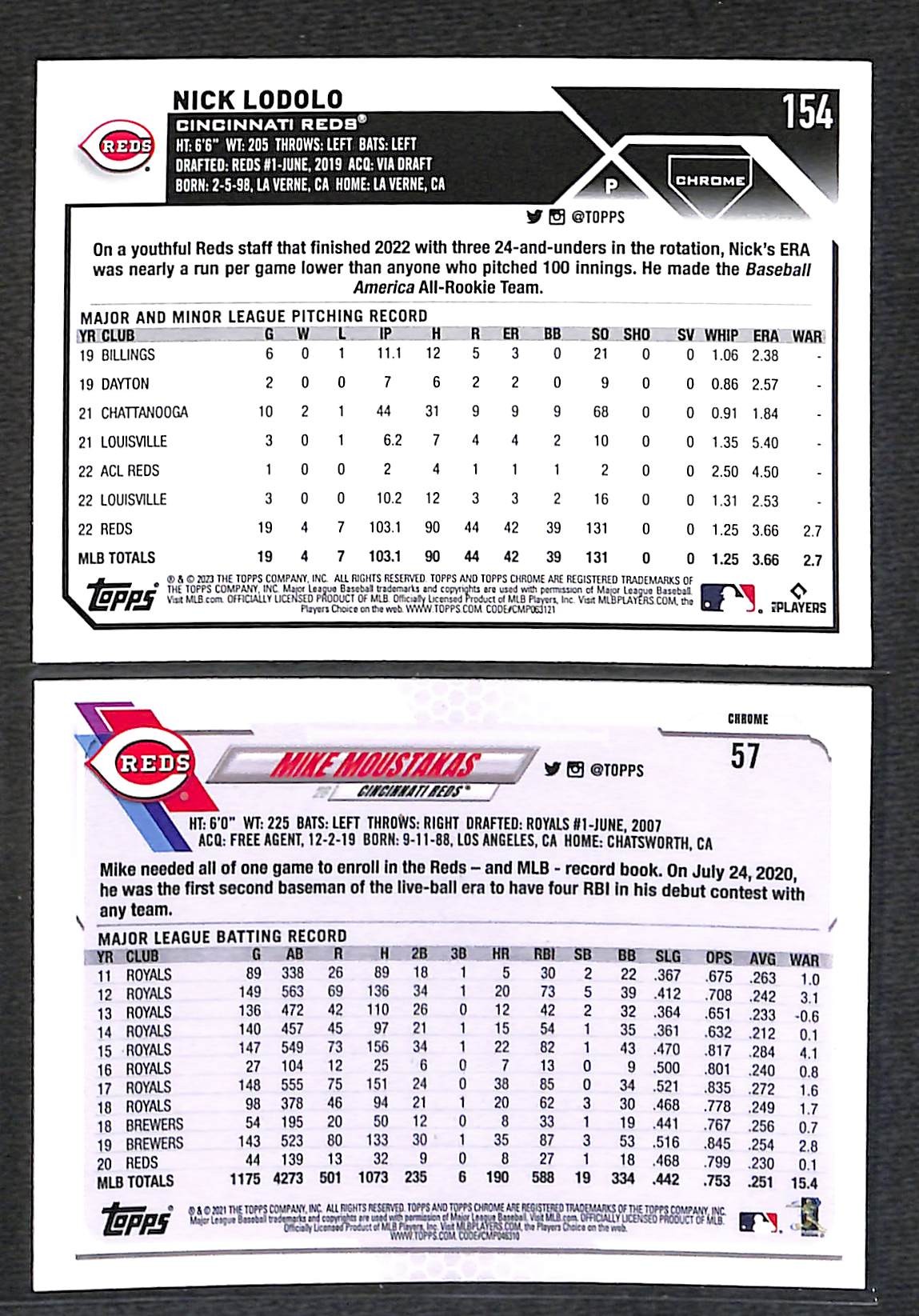 2021 & 2023 Topps Chrome: Mike Moustakas & Nick Lodolo