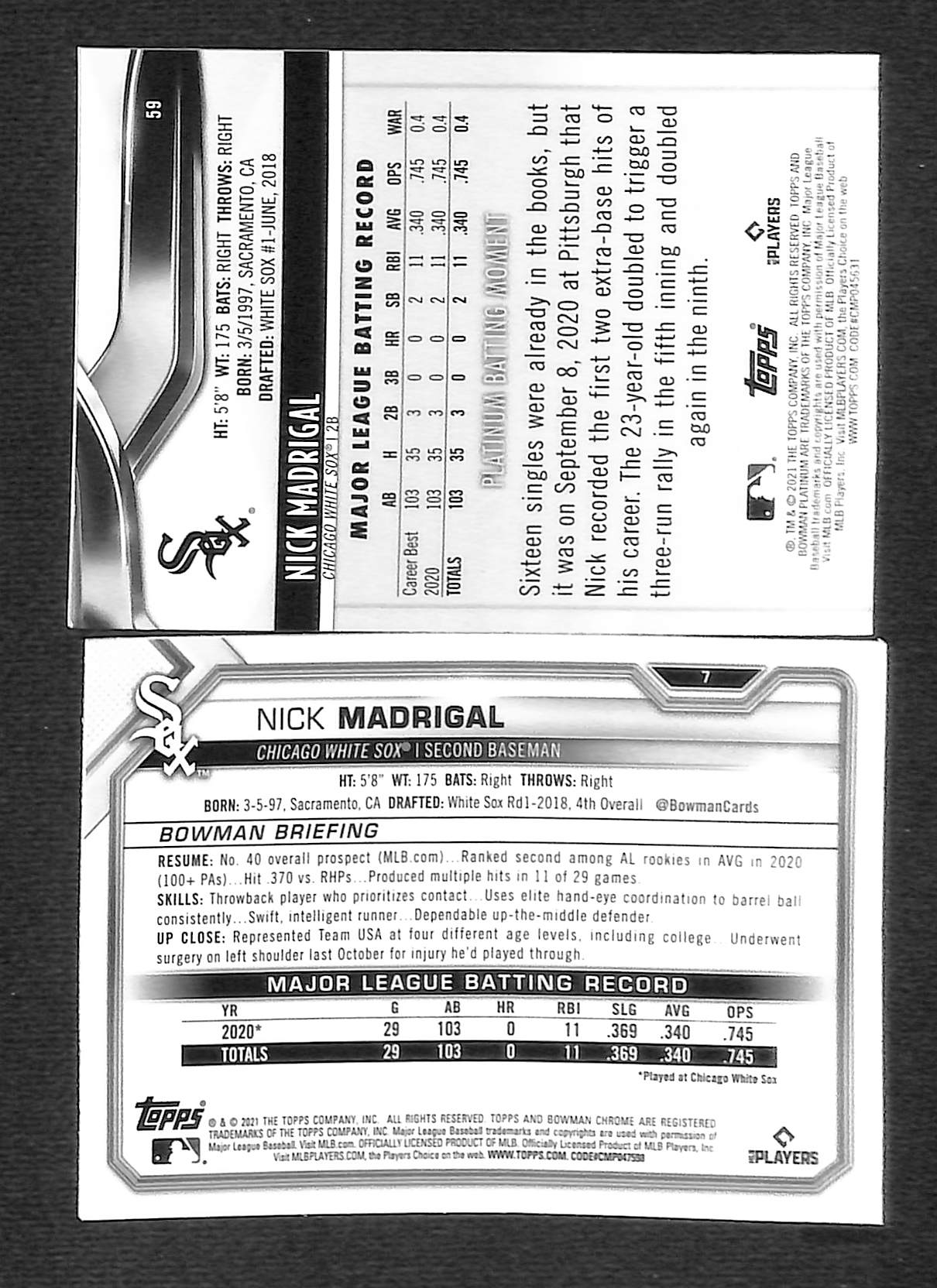 2021 Bowman Chrome & Platinum: Nick Madigral { 2 X RC}