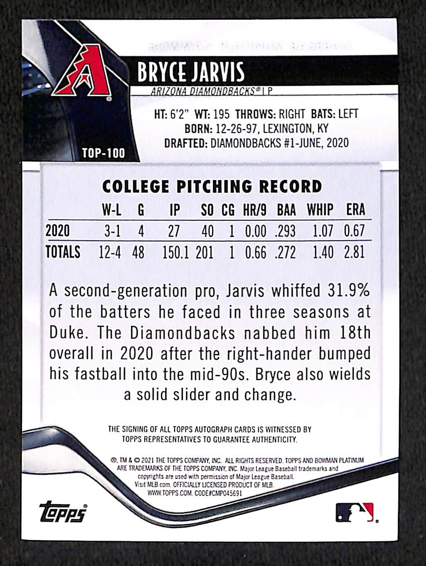 2021 Bowman Platinum: Bryce Jarvis {Certified Autograph}