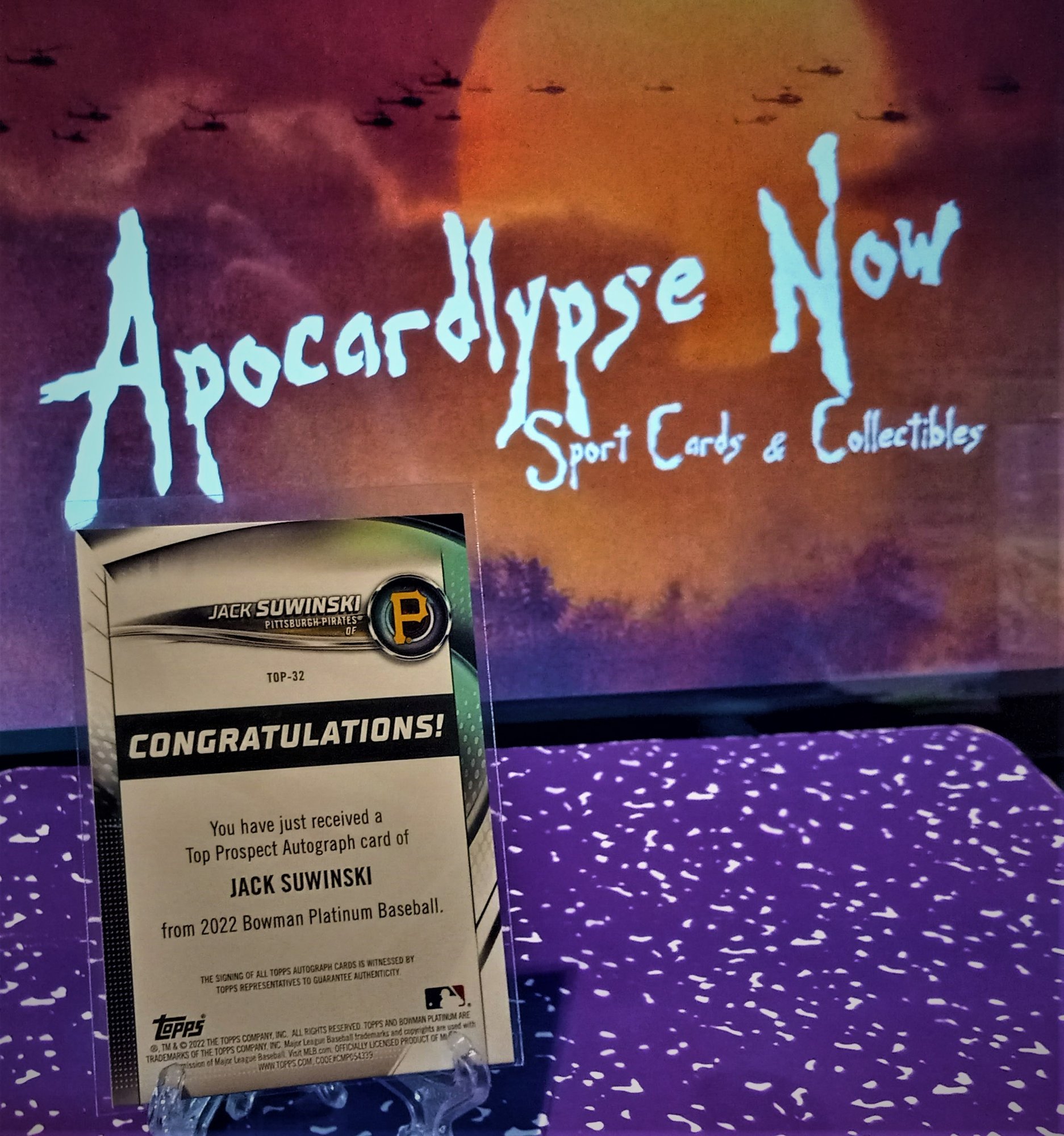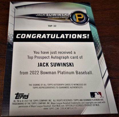 The Pittsburgh Pirates young star depicting his certified autograph on the beautiful Bowman Platinum card stock!