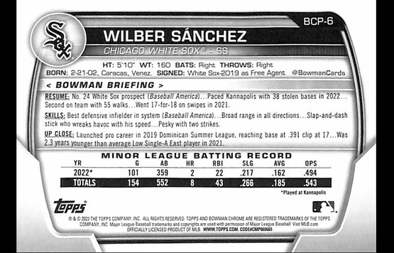 2023 Bowman Chrome: Wilber Sanchez (1st)