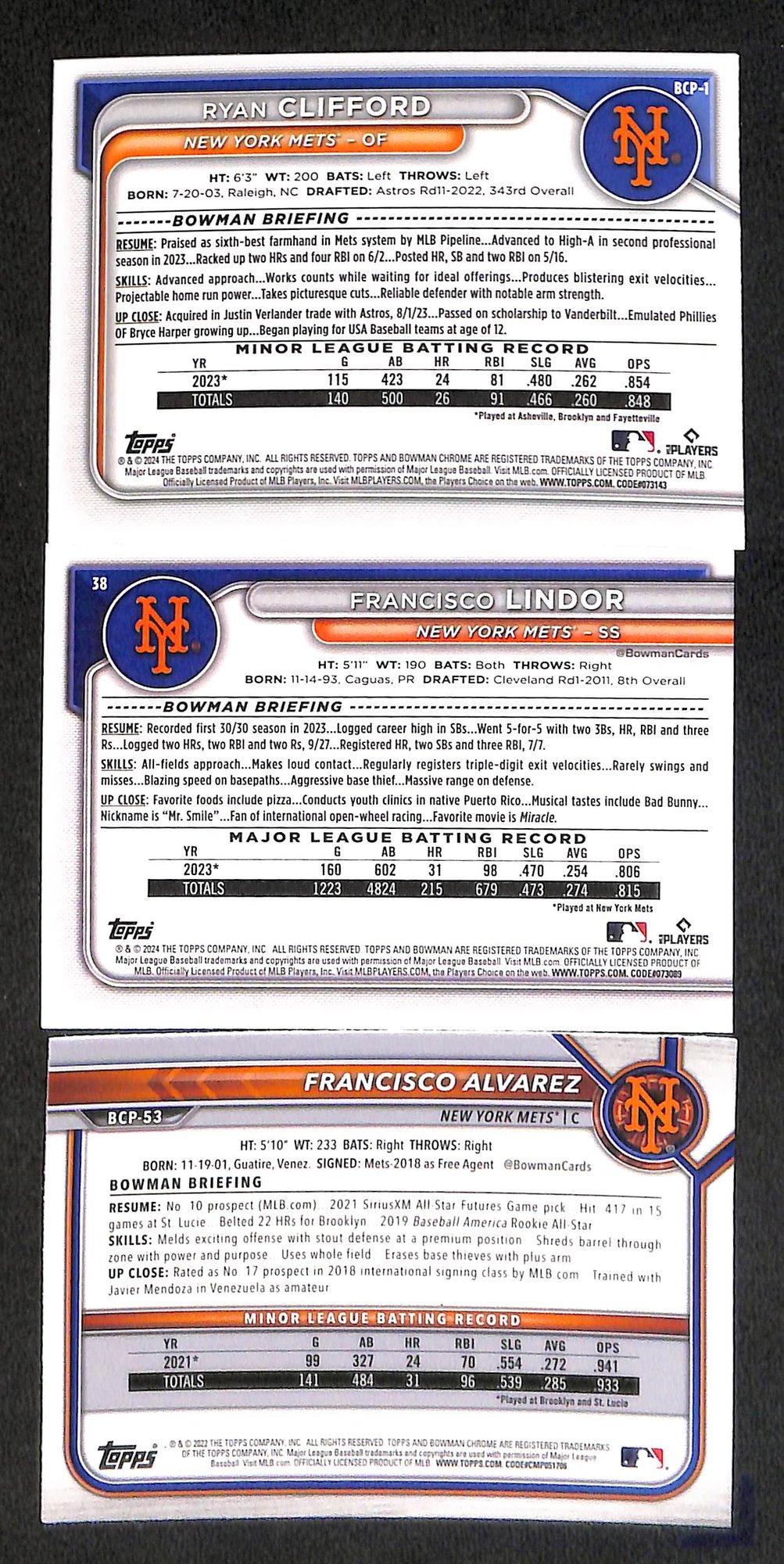 2024 Bowman Chrome: Francisco Alvarez, Francisco Lindor & Ryan Clifford
