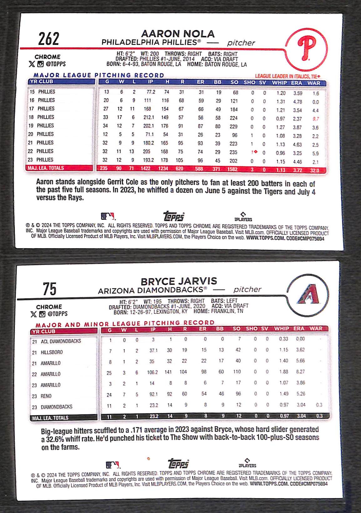 2024 Topps Chrome: Bryce Jarvis {SP - #14/50} & Aaron Nola {Raywave}