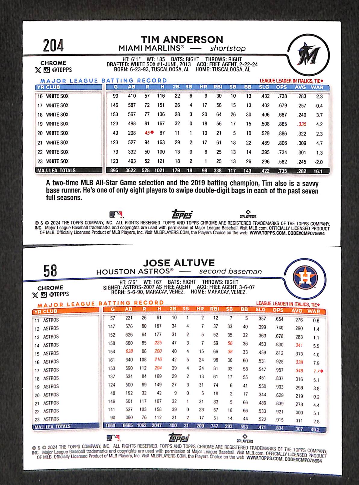 2024 Topps Chrome: Jose Altuve & Tim Anderson {Raywave}