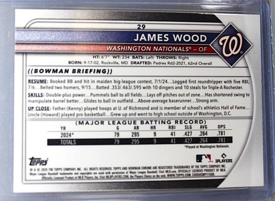 2025 Bowman Chrome: James Wood {Rookie Card - Mojo Refractor}