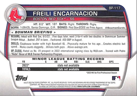 The always coveted first professional card of this Red Sox prospect...